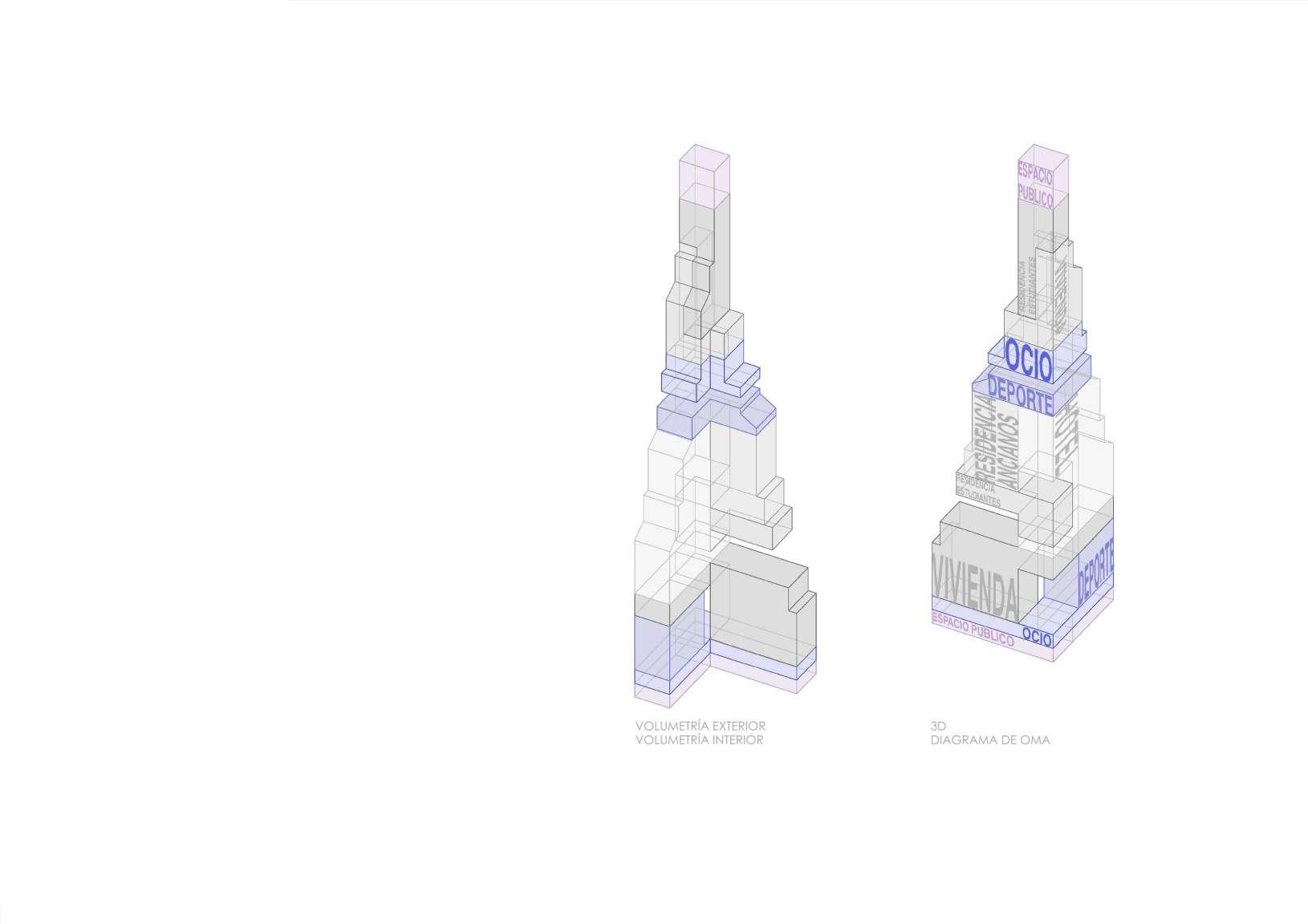 Así mismo se busca una condición espacial que replantee los límites domésticos y ponga en valor la construcción de la torre en Madrid Río. Es así que se plantea la densidad de usos y de espacios y la condición de vacío como partes esenciales. Como reflexión planteamos el pensamiento de la construcción de espacios de tránsito, o esacios de estancia. Superponemos refernecias,, ideas, pensamientos, estilos gráficos, trabajar en grupo es lo que tiene de positivo...