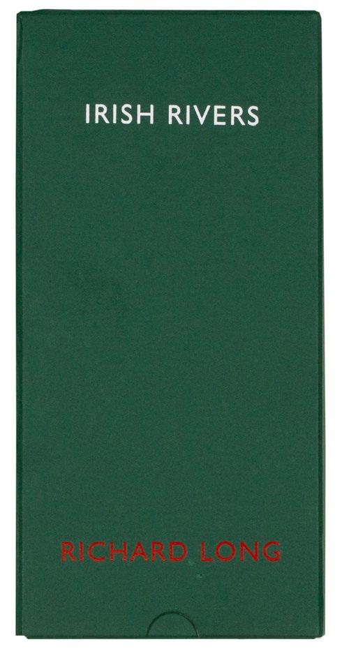 Tall 8vo. (256 × 128 mm). [Single folded leaf]. A single sheet of vellum with original silkscreen in blue and legend in black beneath by Richard Long recto, signed and numbered by Long in pencil at lower right; sheet size: 250 × 118 mm (folded), 1,000 × 695 mm (unfolded). Original publisher's green cloth slipcase with title 'IRISH RIVERS' in white and credit 'RICHARD LONG' in red to front cover, matching chemise with flap.