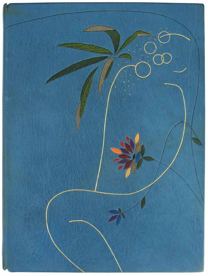 leaves]. Full light blue crushed morocco by Susan Allix with her blindstamped initials to rear pastedown, front board with gilt tooling to form an abstract female figure, tooling in blind flowing over both boards with additional inlaid sections of colour morocco to form a decorative floral design, turn-ins with additional inlaid sections of morocco and tooling in blind to match, blue handmade paper endpapers, loose in original wool-lined blue cloth box with gilt title to spine.