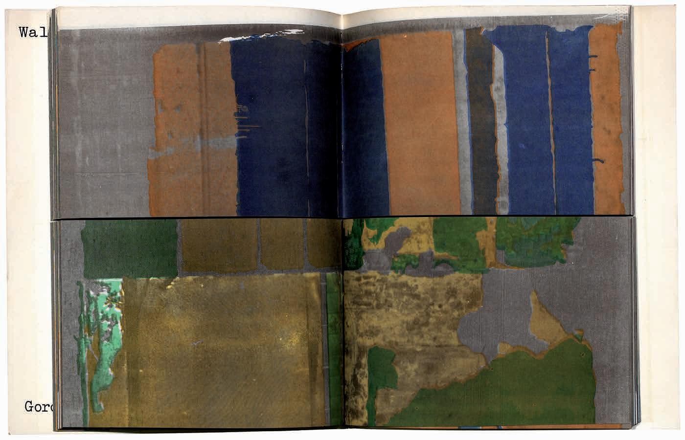 walls of Bronx tenement buildings that were being demolished. Clearly, MattaClark had not been able to get to these buildings before the wreckers, but instead of halving the building, he halved the book. Each page has been cut horizontally, so that the viewer can experience MattaClark’s creative process, and ‘split’ the building while turning the pages.