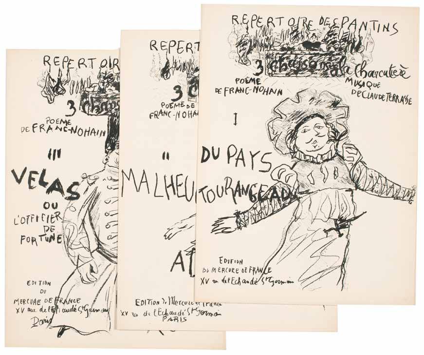 ¶ A complete set of the musical scores with covers illustrated by Pierre Bonnard for the Répertoire des Pantins.