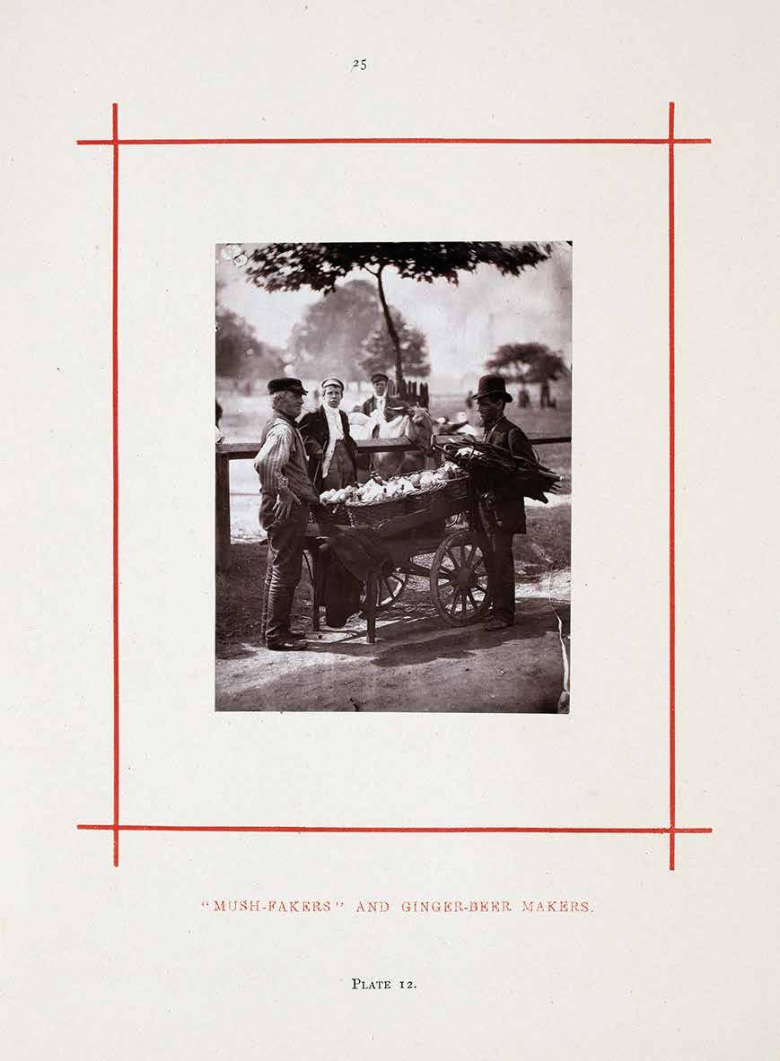 an idea of the Whitechapel of Jack the Ripper than from any nostalgic image of a strait-laced or patrician Victorianism. Each image is accompanied by descriptive text. Thomson and Smith are sympathetic to the objects of their study and seem intent on cataloguing the variety of types to be found rather than attempting any Barnum-like freakshow.