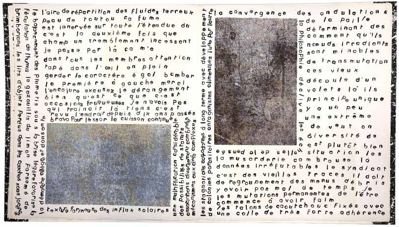become well-known. She writes in a clamorous tumult of different voices that seem to compete in different languages and tones, calling and responding, questioning and answering. Her words are of spiders, of her mother, of loss, remorse, anxiety, weaving, fear, joy and memory, regret and uncertainty, the effect a powerful complement to her images, the result a powerful tour de force and an extraordinary artist book.