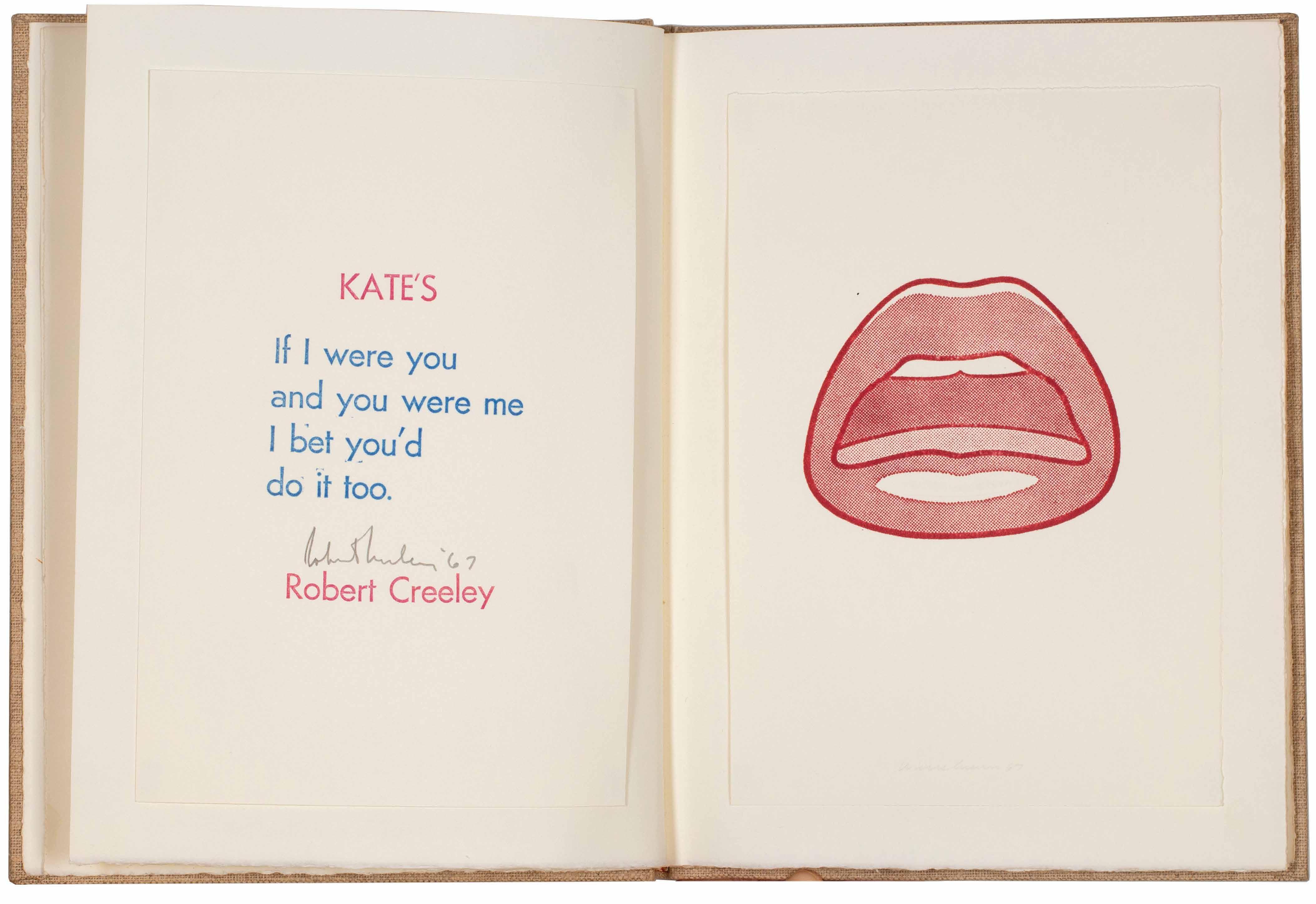 commercially made rubber stamps, which he then handprinted to create this book. (‘Stamped Indelibly’ contains Warhol’s first cow print and Oldenburg’s first drum pedal print.) Robert Indiana, an instructor whom Katz met at college, offered him space in which to work, thus Indianakatz became the imprint of this book. Katz later founded Bouwerie Editions to publish books of poetry with prints ...’.