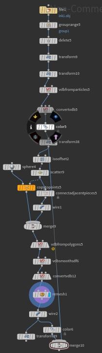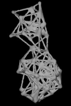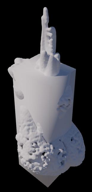 • Modeling and analysis with houdini : So I took a few frames of the ink’s fall and extracted them into an electronic model using houdini software. In the process of analyzing the electron model, I found that their structures had certain similarities. I extracted some particles from the electron model and made use of them to form the initial structural form of the building.