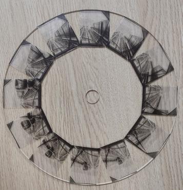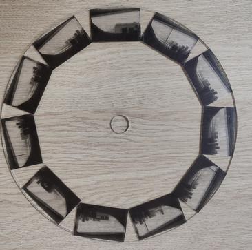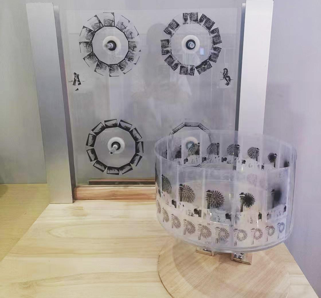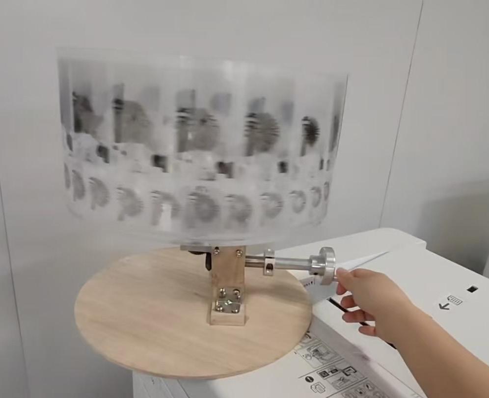 I made some frames in the video extraction, and then how to connect them together was a problem, so I came up with the idea of using the principle of stopmotion animation to continuously link frames together, but I also wanted this device to be interactive with people, so I made the part of the rotary table can be moved by hand, or the rocker can make it rotate