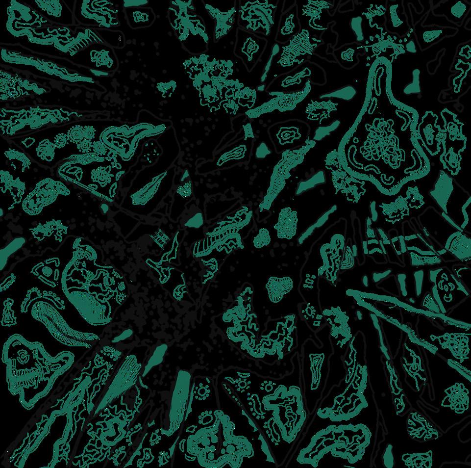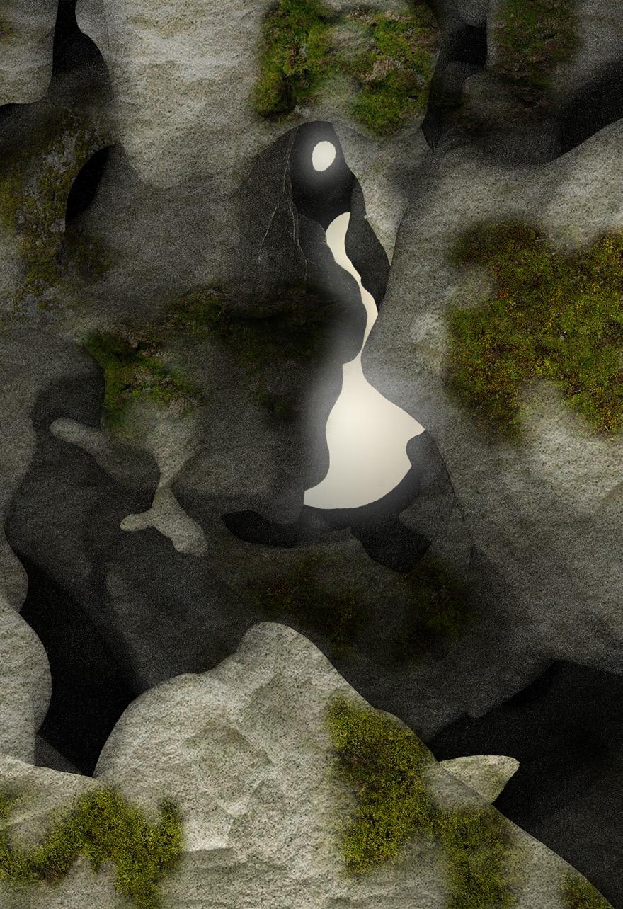 I splashed a drop of ink on the paper, I extracted the effect he formed, and found that he had a lot of hole structures, and I thought of this hole structure as a three-dimensional small space, maybe there are stairs, gardens, some small rooms, some tables, chairs, benches, or some blue stone floors. After I drew it in this texture map, I wanted to recreate the scene, and I had this effect scene above.