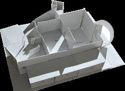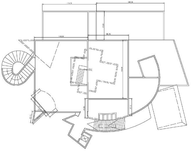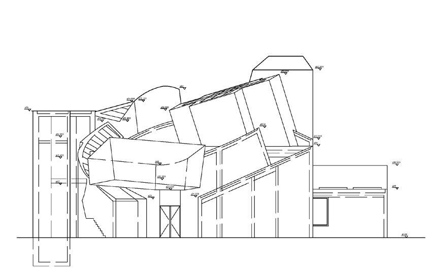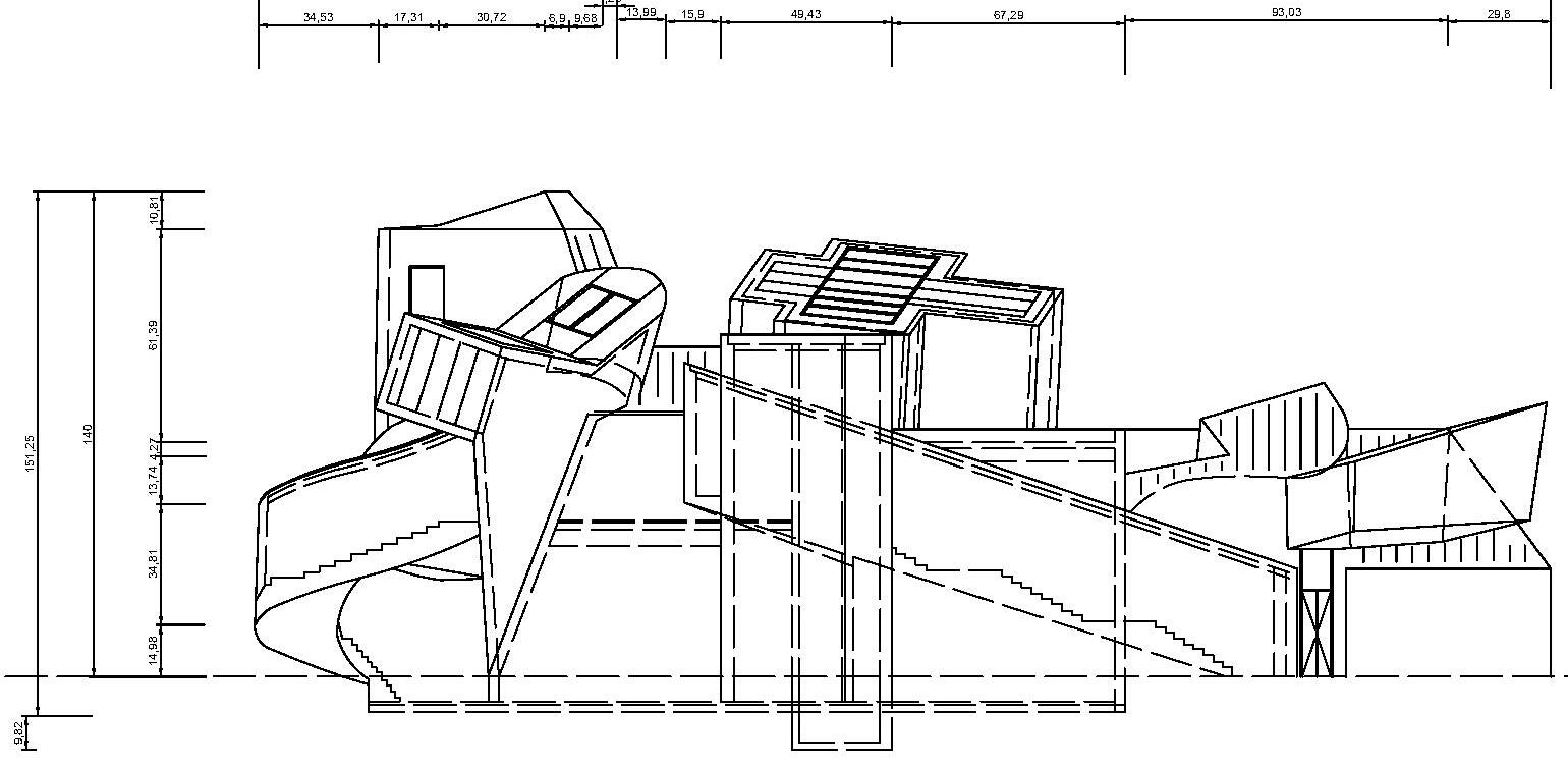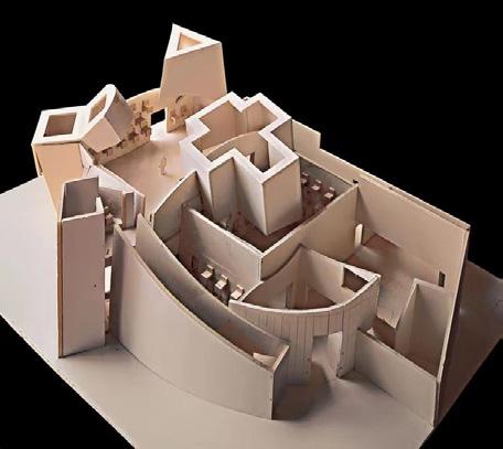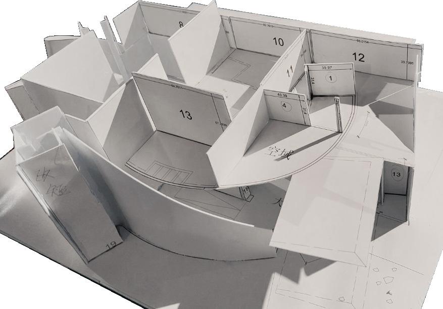 This deconstructionist building is reproduced without detailed dimensions In the absence of detailed dimensional drawings of the Vitra Museum, it is not easy for us to restore him to his structure. Because it is a deconstructionist architecture, the spatial structure of the building is like building blocks, and the space and spatial views are interspersed with each other and have strong flexibility. Therefore, we restored his plan section and elevation according to some reference plans provided on the website and some interior photos circulated on the network, and on this basis, his model was built. Since the building has various cutting angles, we need to calculate the length of the edge by the Angle of its included Angle. This project is a cooperative project, and I am responsible for the calculation, cutting and assembly of the first floor and roof parts