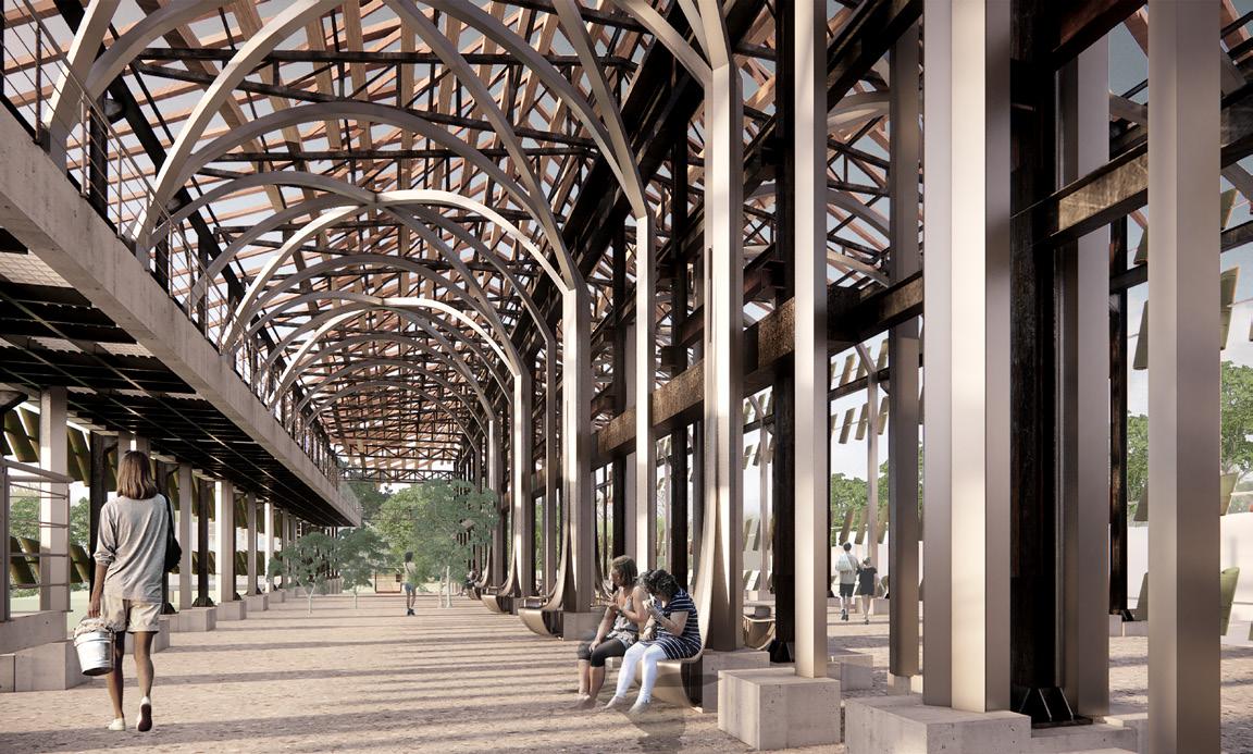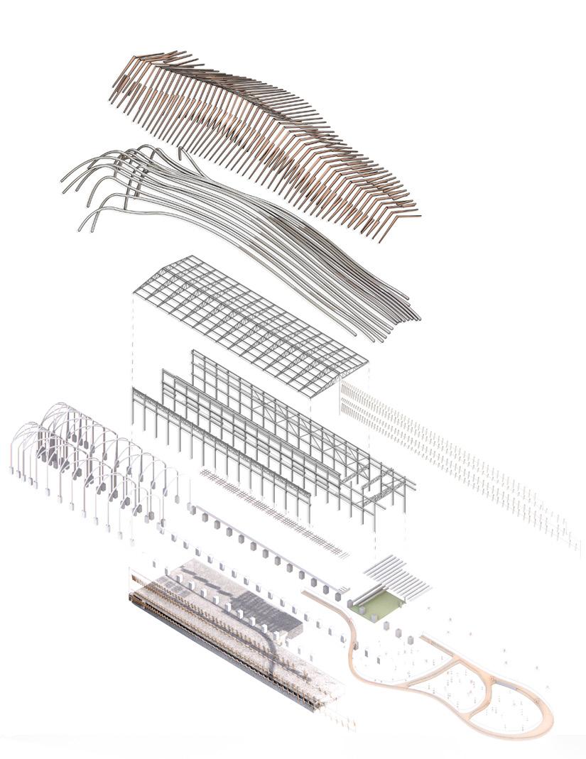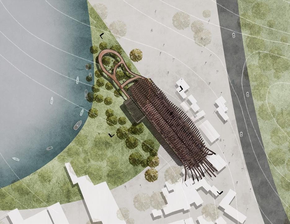 Through the analysis of the geographical environment and context of the shipyard, it is concluded that the shipyard is near the sea, rainy and windy. And this is an abandoned shipyard. We want to carry out a comprehensive transformation here and transform it into a seaside landscape pavilion.This project is a team cooperation project, and I am mainly responsible for research and shipyard modeling.