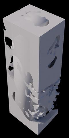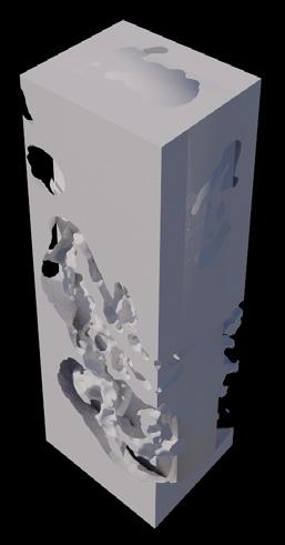 I got the first version of the architectural form through the previous imagination, but I was not very satisfied, because in fact, he did not show the structure of this hole in the facade, I want to make more thorough use of this hole structure, so there is the following way to generate the building. I use cubes of different sizes to cut the ink solid model that has been generated before, so that the hole structure and shape of different states can be obtained. And because the cutting is done in the agreed solid model, these models can be connected to finally form the architectural form shown on the right.
