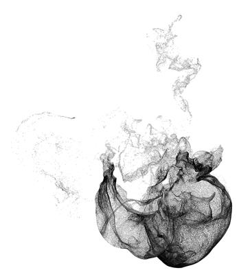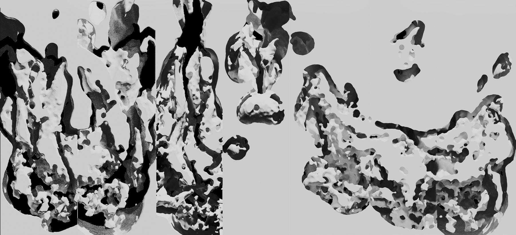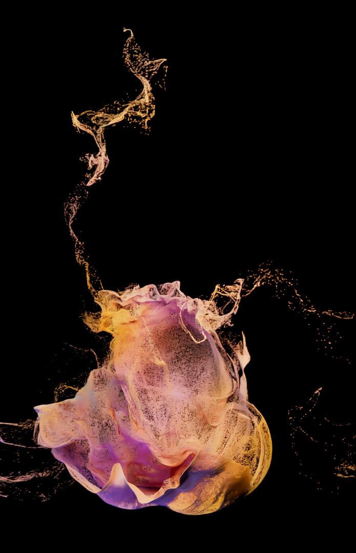 Based on the preliminary understanding of the motion track of the ink wash, I became more interested in the form of the ink wash in water, so I restored the ink wash through particle form in houdini software, and rendered it into the ideal state of the ink wash in water. It echoes the previous response to the state of different colors of ink in water, but just so, I can not extract the structure of the ink.