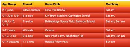Carrington School, Redhill and Kiln Brow Stadium on weeknights, with matchdays on a Saturday or Sunday morning.