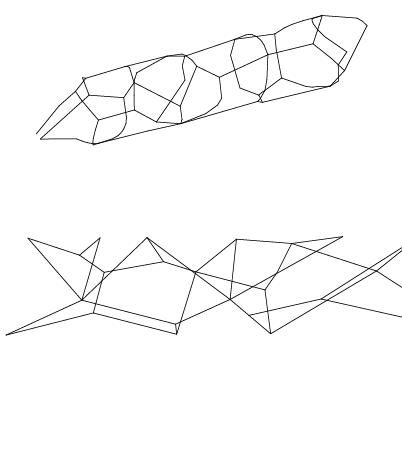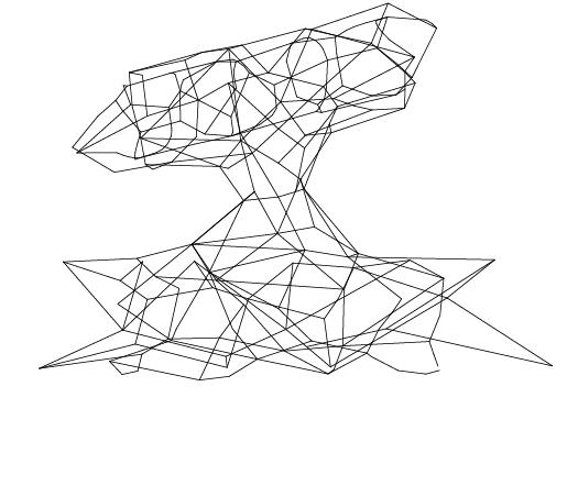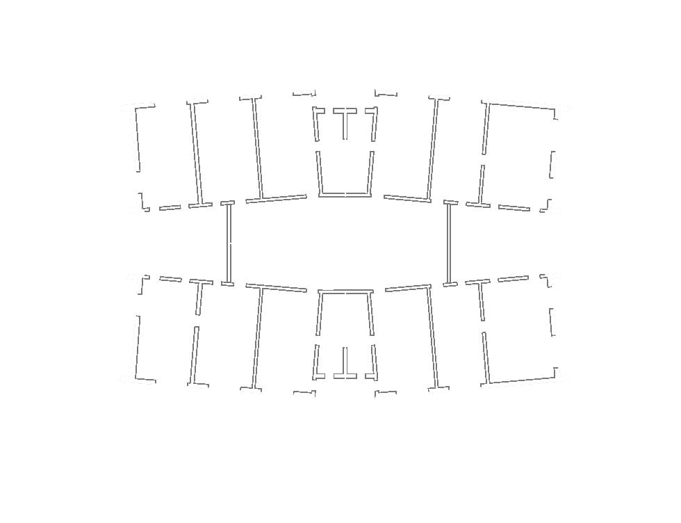 Eine der Schleifen stellt die vereinfachte Form der Außenkontur des Gebäudes dar und verläuft in einem strikten vertikalen und horizontalen gekreuzten Kurs. Die zweite Schleife greift das Konzept des Grundrisses auf, ballt sich in dessen Mitte und tritt in den Ecken nach außen hervor. Die dritte Schleife widmet sich der Analyse der Strukturen und Wiederholungen in der Anordnung der Fenster und Lodgien. Die vorliegende Struktur definiert den Großteil der Randstruktur des Würfels.