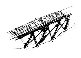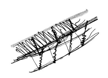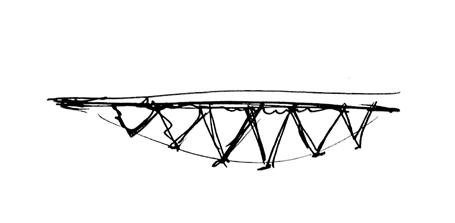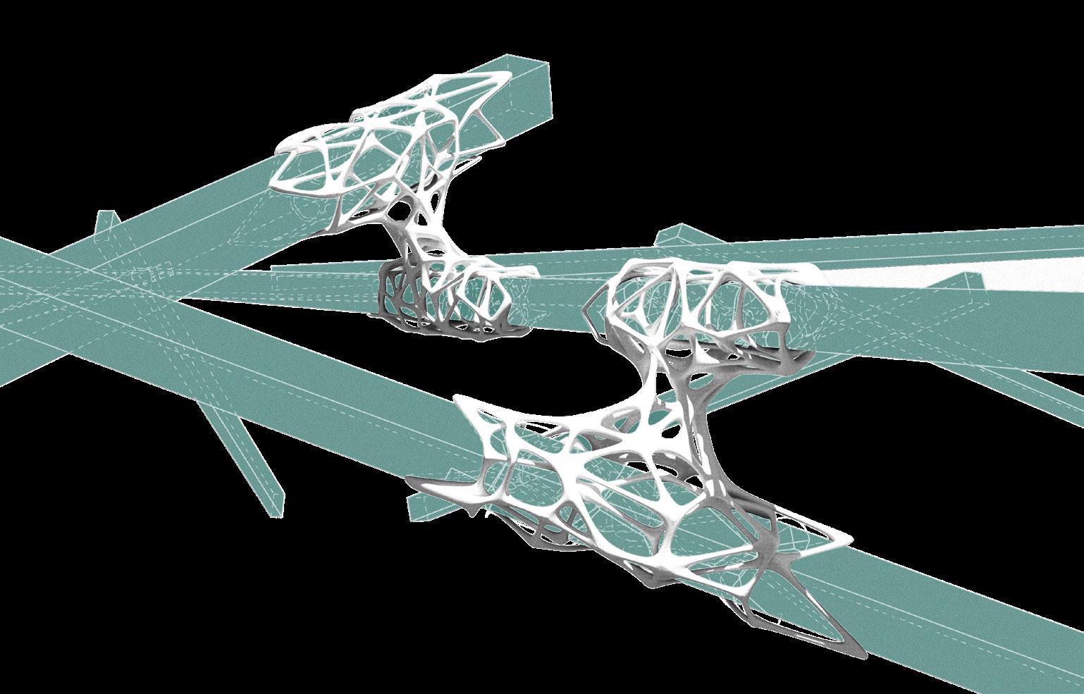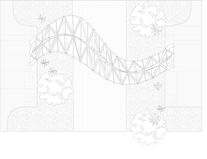 Die Grundstruktur der Brücke basiert auf zwei Fixpunkten mit einem Abstand von 14 Metern, die durch eine Linie verbunden wurden. Das Tragwerkskonzept folgt einem dreiecksförmigen Fachwerksystem, das mithilfe von Grasshopper generiert wurde