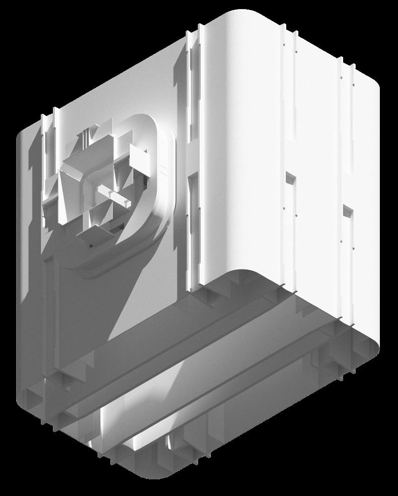 Das Gebäude wird einer dreigliedrigen Klassifikation unterzogen. Die vorliegenden Schleifen repräsentieren explizite architektonische Prinzipien, welche das Gebäude definieren. Angeordnet sind die Schleifen in einem 7 mal 7 3D-Würfelraster. Die vorliegende Schleifenstruktur weist drei Durchbrüche auf, die die Entstehung von drei Schächten bedingen.
