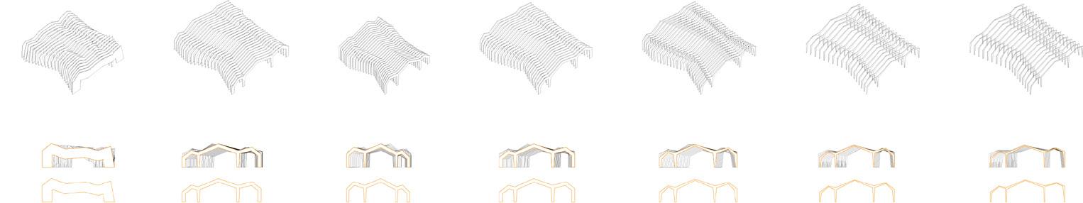 Die Besonderheit des Projektes lag darin, dass vorhandene Stäbe gezielt in die Struktur- und Formfindung integriert wurden. Die Materialverteilung erfolgte mittels Machine-Learning-Algorithmen in Galapagos. Dabei wurde die Ressourceneffizienz zum leitenden Kriterium. Das System suchte iterativ nach Lösungen mit minimalem Materialeinsatz, maximaler Tragfähigkeit und gleichzeitig minimaler Verformung.