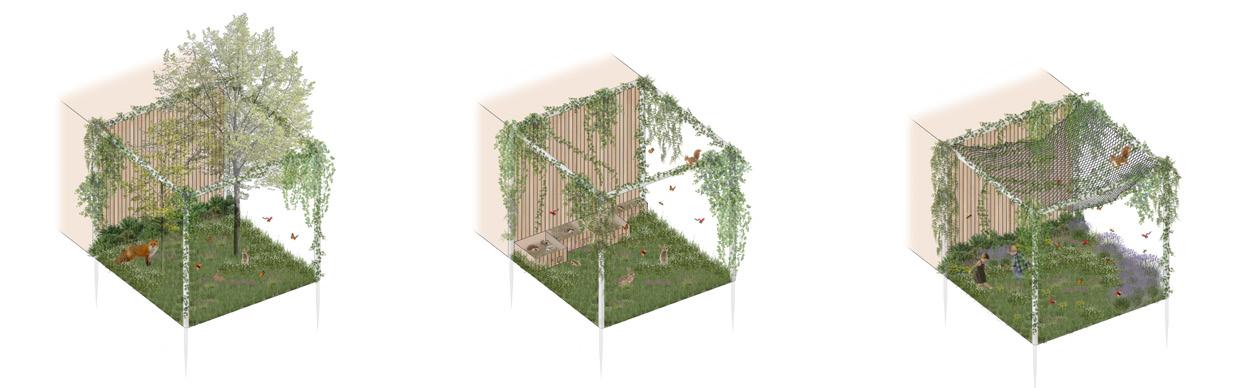 Das neu geschaffene Habitat des Menschen dient nicht nur als Wohnquartier, sondern auch als Bindeglied zwischen Mensch und Natur. Statt sich gegenseitig zu verdrängen, ergänzen sich die Lebensräume und fördern die Ausbreitung der, ohne dabei mit dem menschlichen Lebensraum in Konkurrenz zu treten.