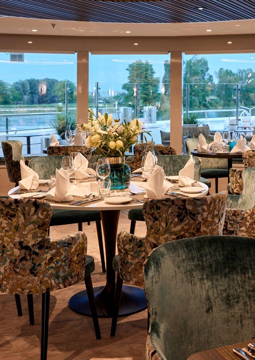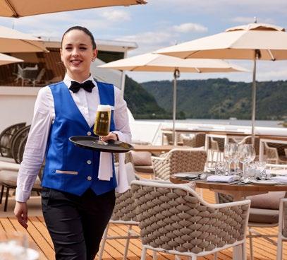 Alles ist lichtdurchflutet, lässig-elegant, und die Natur ist zum Greifen nah. Natürlich auch auf dem Sonnendeck, wo Sie auf Rhein und Donau in die schönsten Landschaften eintauchen. Oder in den beheizten Außenpool. Legen Sie für die Saison 2026 also ruhig schon mal Ihr Badeoutfit bereit.