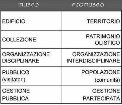 Un ecomuseo rappresenta un approccio innovativo alla conservazione e valorizzazione del patrimonio culturale e naturale di un territorio. A differenza dei musei tradizionali, che si concentrano sull'esposizione di collezioni in spazi chiusi, l'ecomuseo si sviluppa all'interno del territorio stesso, trasformandolo in un "museo diffuso" in cui le comunità locali sono protagoniste attive (fig.2). Questa caratteristica lo rende uno strumento efficace per promuovere lo sviluppo sostenibile fondato sull'identità e le risorse locali..
