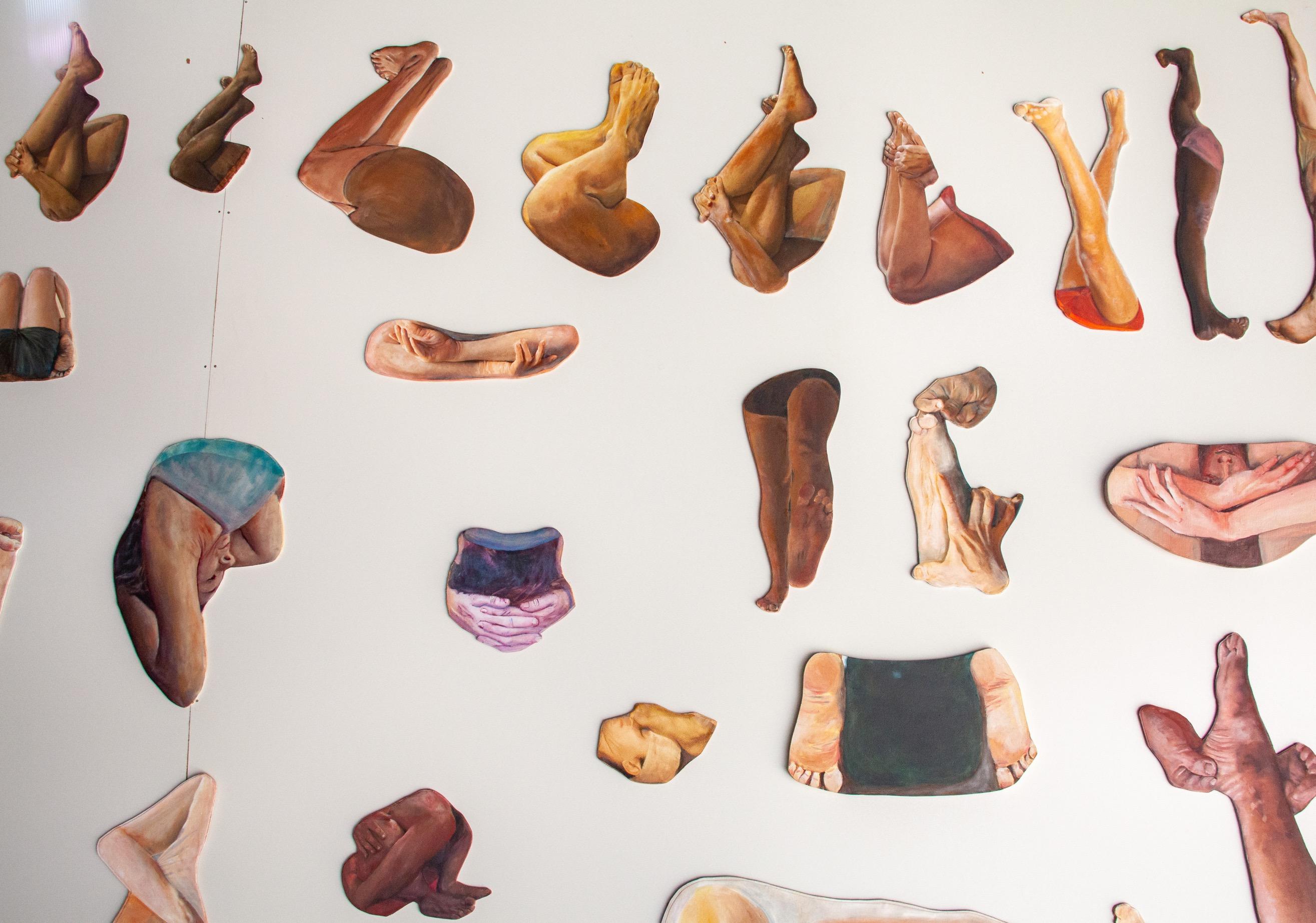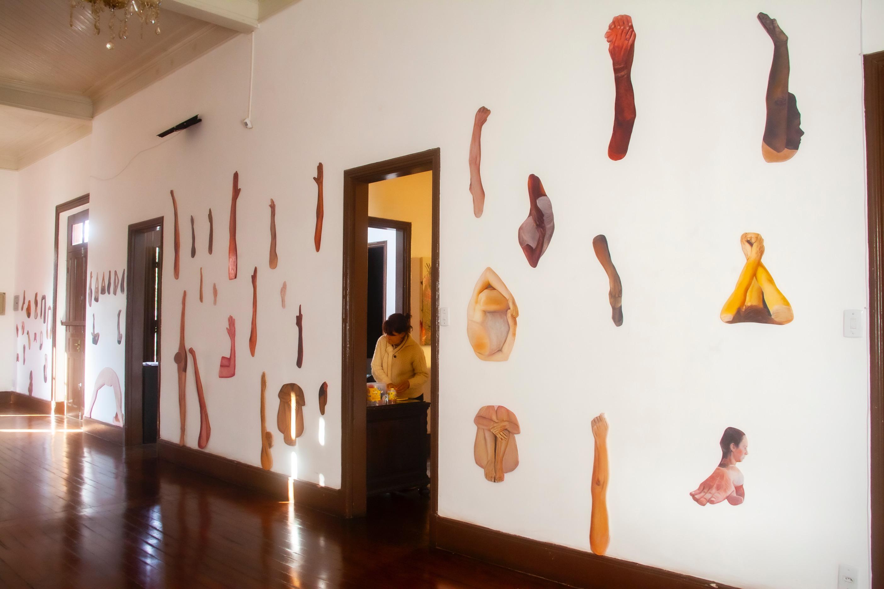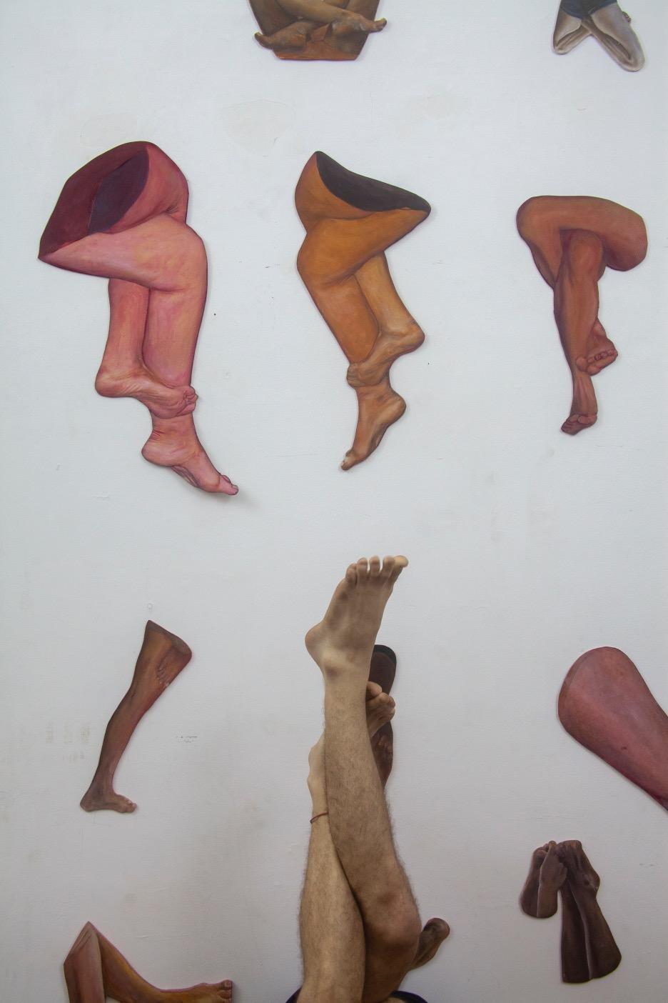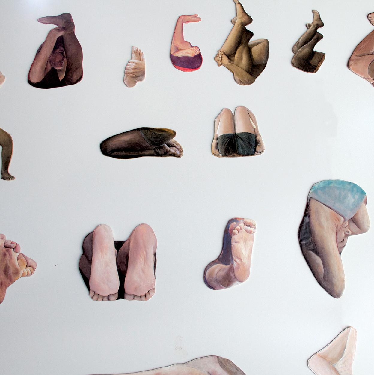 Um conjunto com um número incontável de pedaços que pedem para serem lembrados: Onde estão? De onde vieram? À quem pertenciam? O corpo é sempre perfeito porque é importante. Nos permite participar. viver, ser, com atitudes simples ou complexas. Feitos de carne e osso, somos muitos que se completam, infinitos, fazemos a história com o corpo ativo e consciente no agora. As imersões testam os limites do corpo vivo e ativo com a pintura dos pedaços recortados e dispostos pelas paredes. Misturam-se todos e viramos parte da criação.