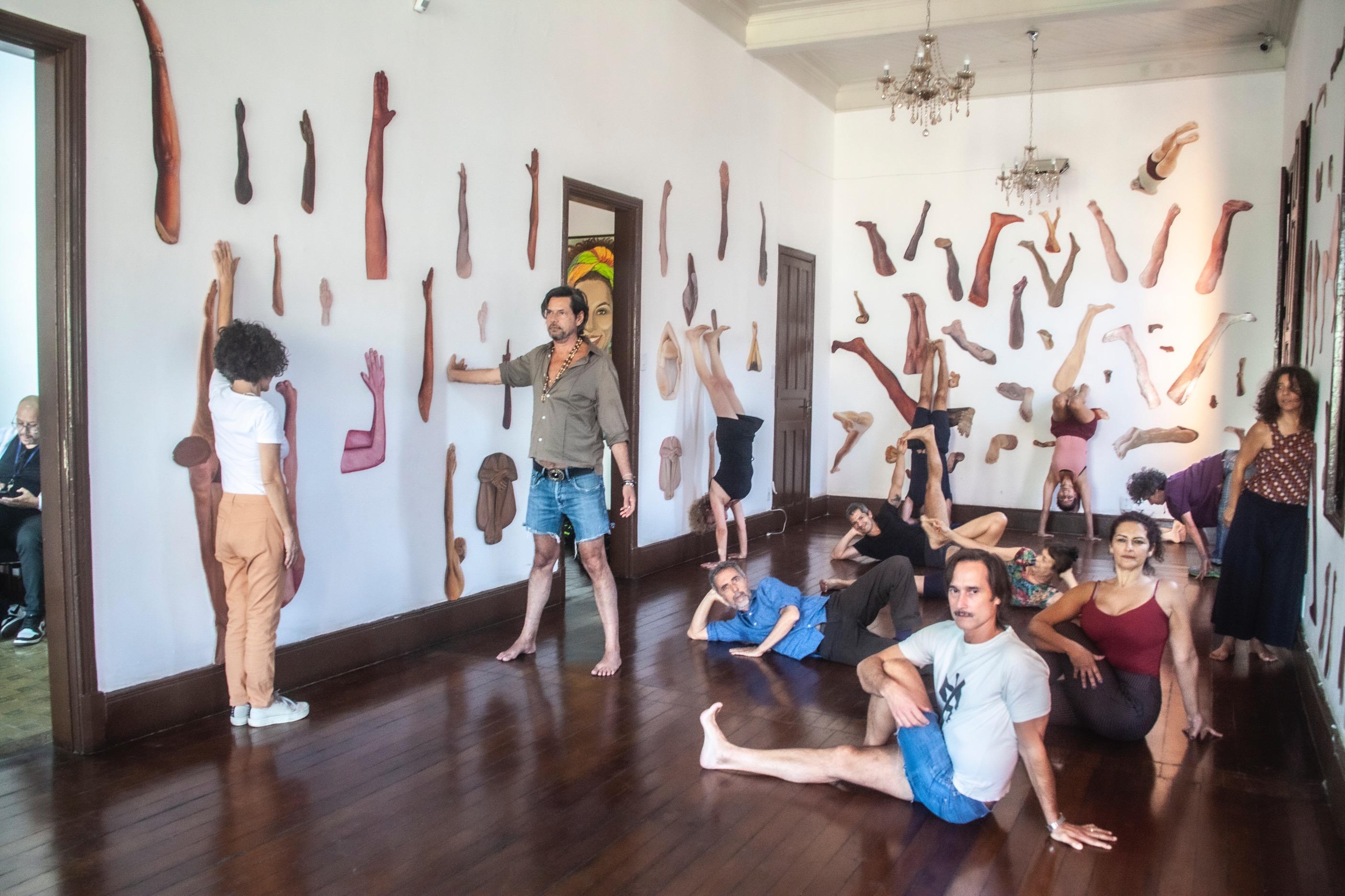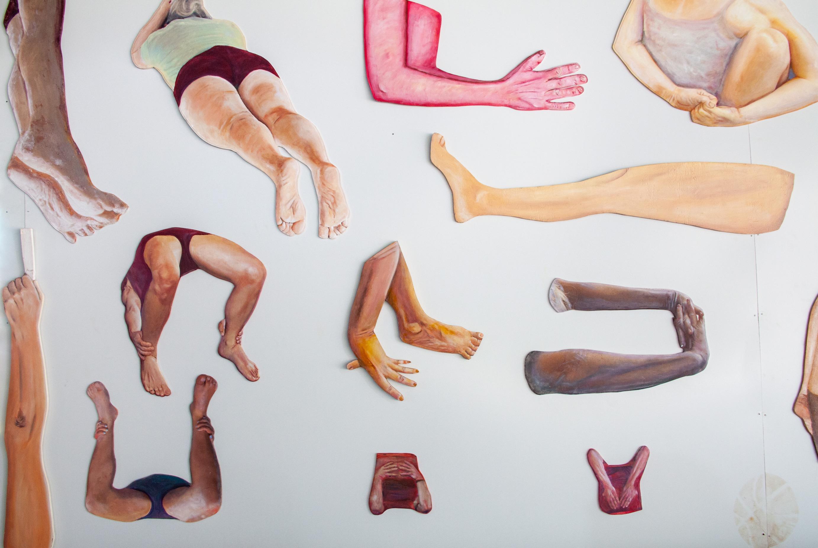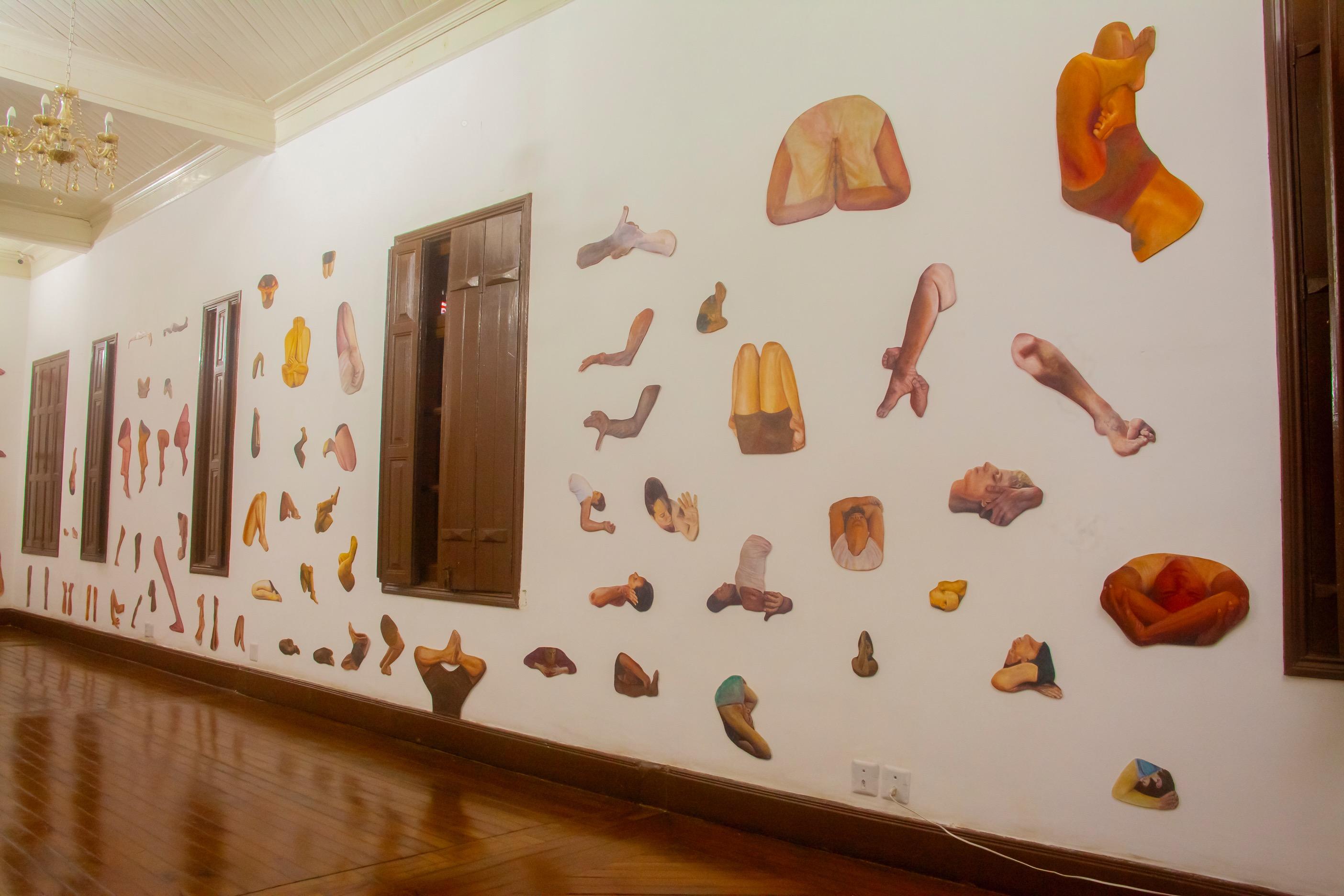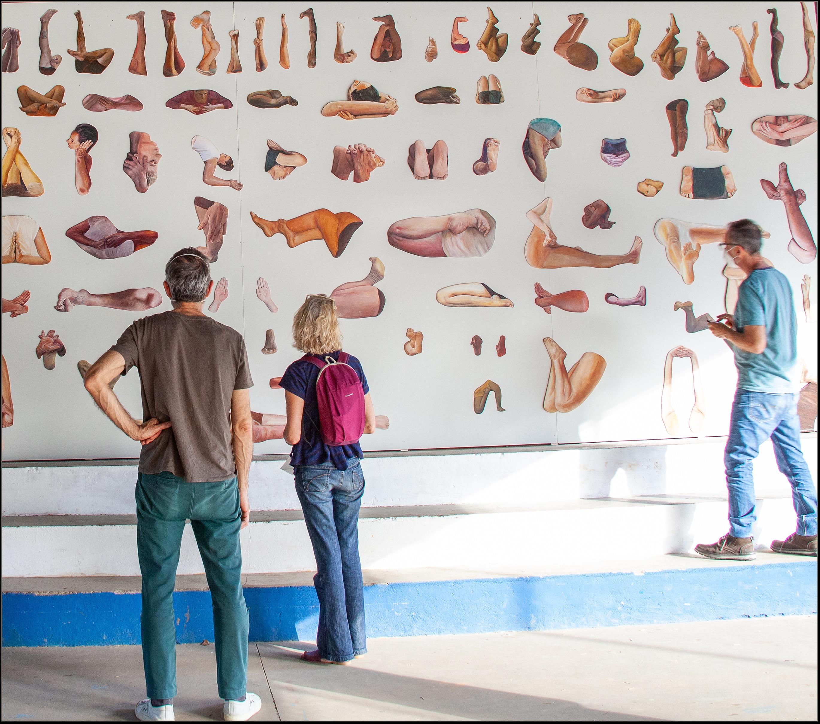 Um conjunto com um número incontável de pedaços que pedem para serem lembrados: Onde estão? De onde vieram? À quem pertenciam? O corpo é sempre perfeito porque é importante. Nos permite participar. viver, ser, com atitudes simples ou complexas. Feitos de carne e osso, somos muitos que se completam, infinitos, fazemos a história com o corpo ativo e consciente no agora. As imersões testam os limites do corpo vivo e ativo com a pintura dos pedaços recortados e dispostos pelas paredes. Misturam-se todos e viramos parte da criação.