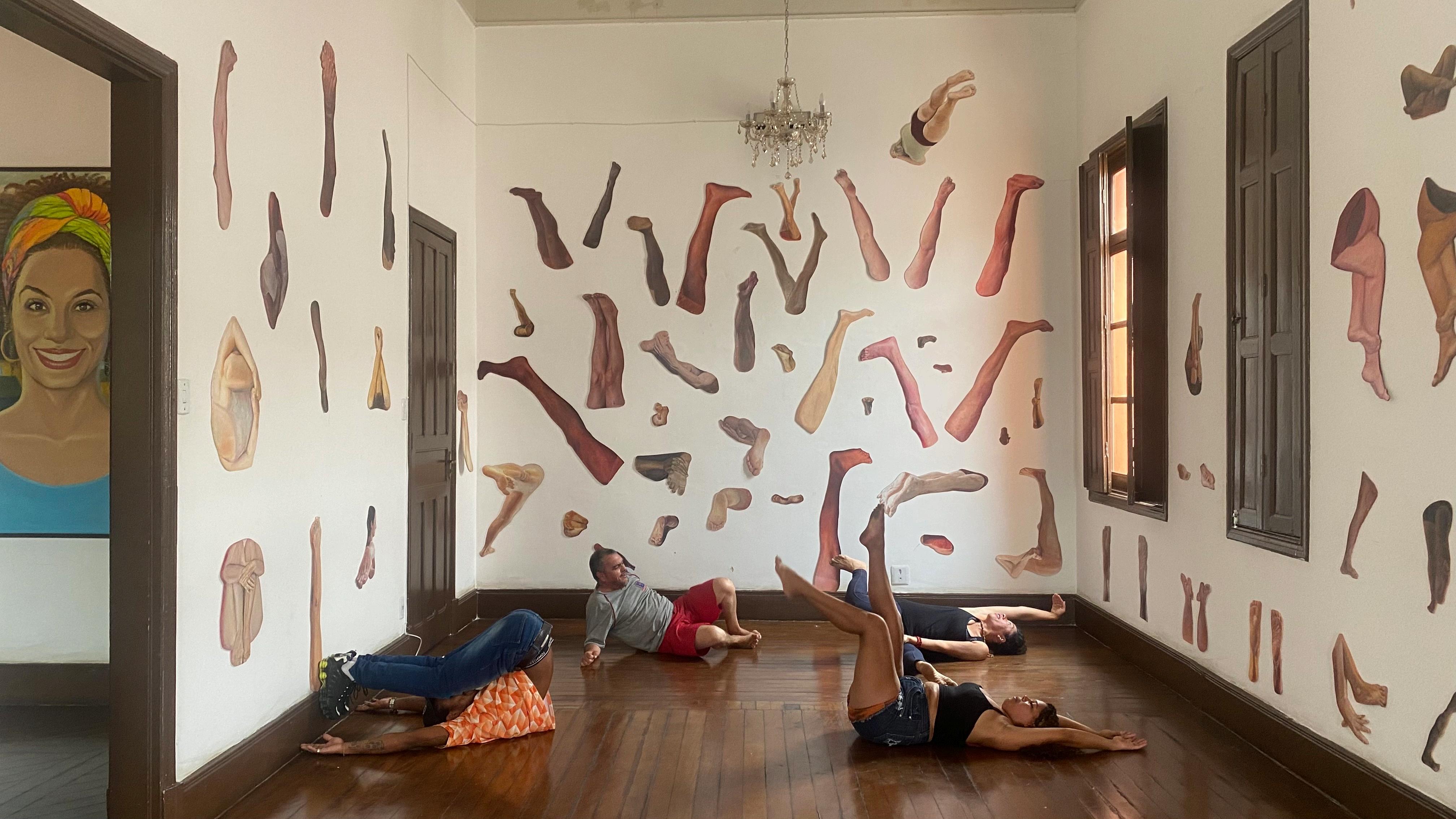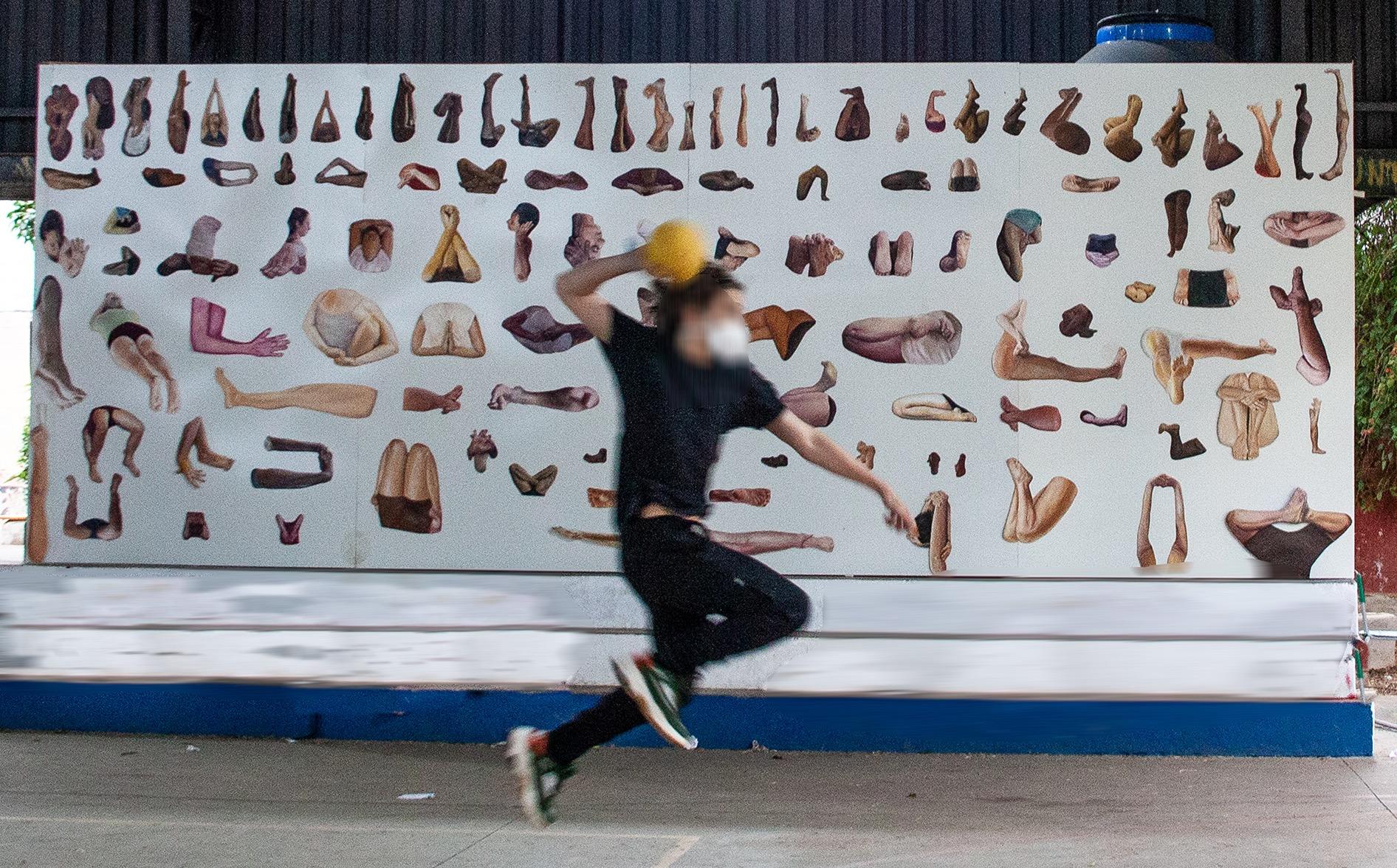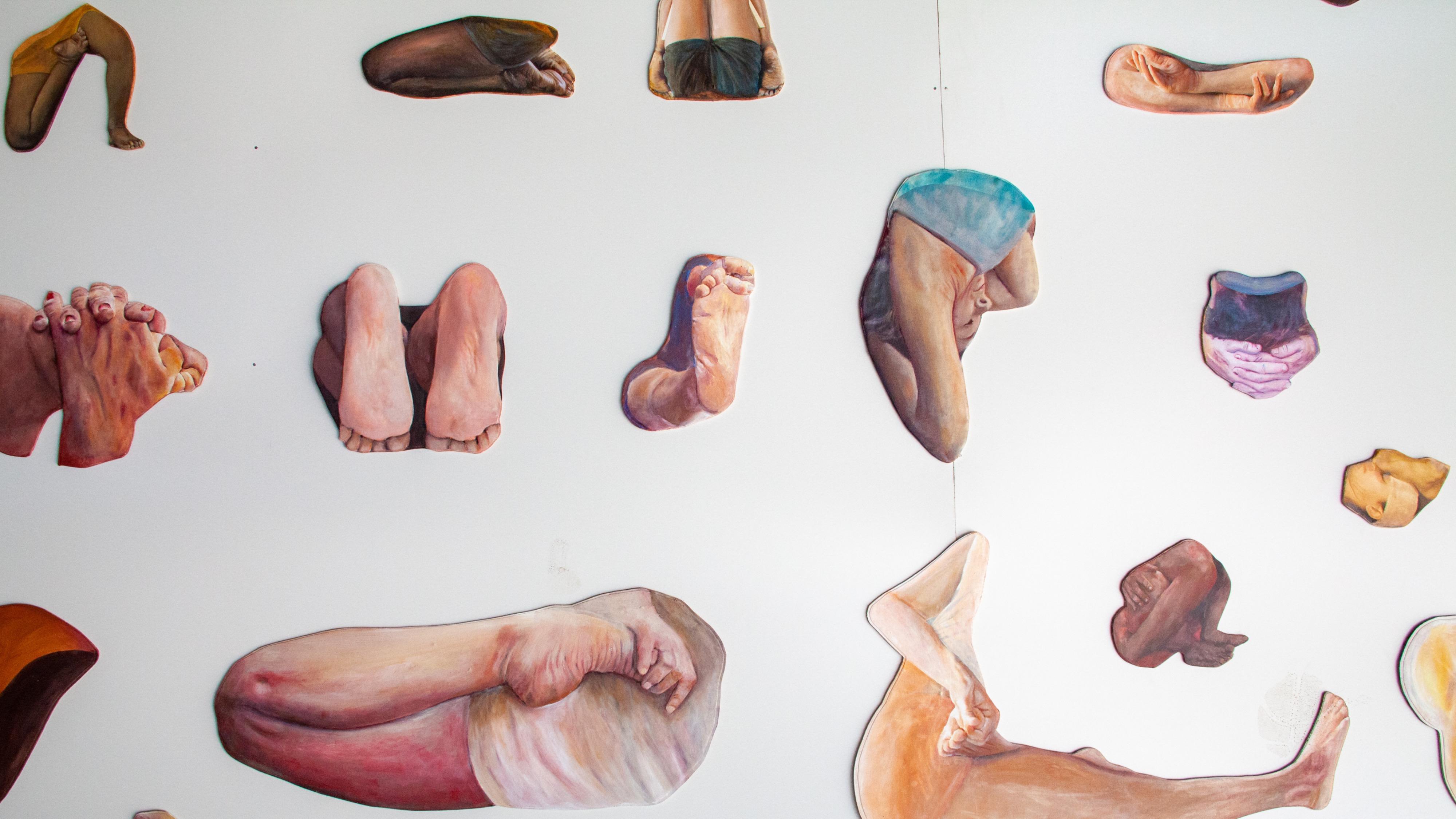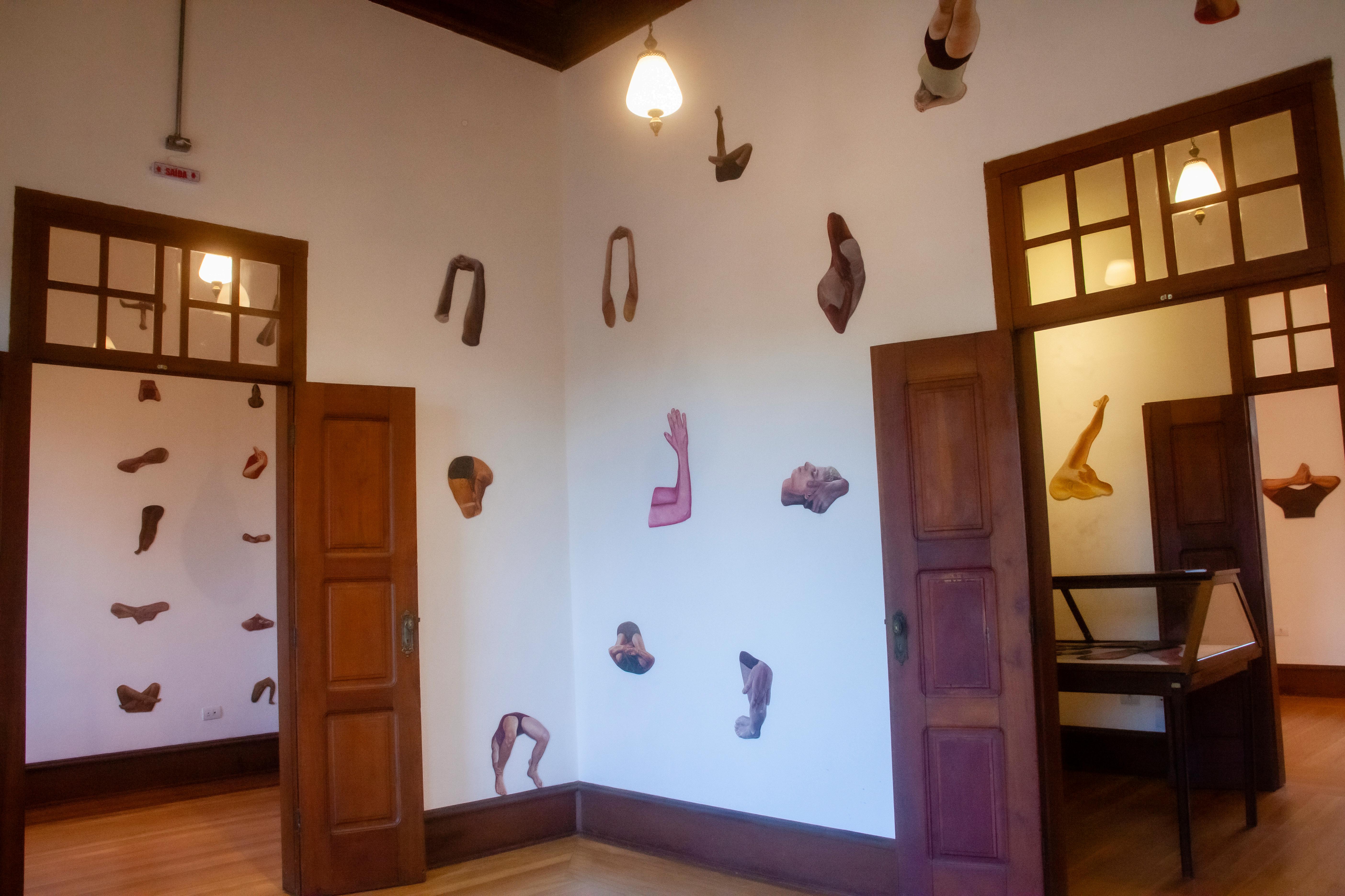 Um conjunto com um número incontável de pedaços que pedem para serem lembrados: Onde estão? De onde vieram? À quem pertenciam? O corpo é sempre perfeito porque é importante. Nos permite participar. viver, ser, com atitudes simples ou complexas. Feitos de carne e osso, somos muitos que se completam, infinitos, fazemos a história com o corpo ativo e consciente no agora. As imersões testam os limites do corpo vivo e ativo com a pintura dos pedaços recortados e dispostos pelas paredes. Misturam-se todos e viramos parte da criação.