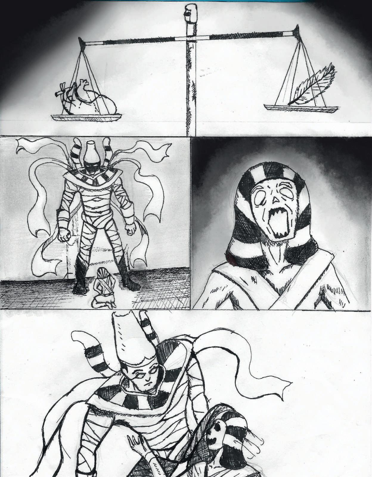 Bienvenido a la sala de las dos verdades, nosotros presidiremos de este juicio donde el valor de tu alma determinara si asciendes al cielo como una mas de las estrellas que conforman el rmamento para vivir eternamente o……