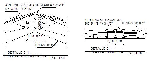 LAS PIEZAS QUE FORMAN LA CUERDA DEL CIELO RASO; VAN PERNADAS CON 8 PERNOS DE 1/4" DE DIÁMETRO x 4" DE LARGO.