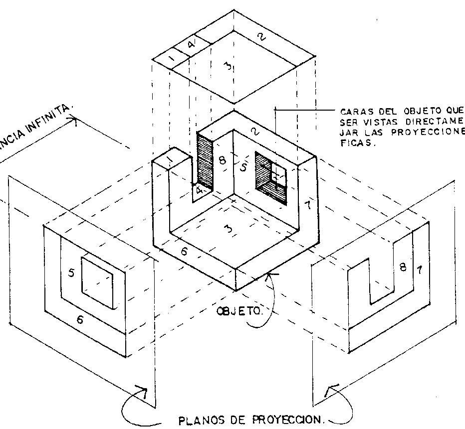 LAS PARTES DE LA FIGURA SE PROYECTAN A LA CARA DEL CUBO EN FORMA PERPENDICULAR