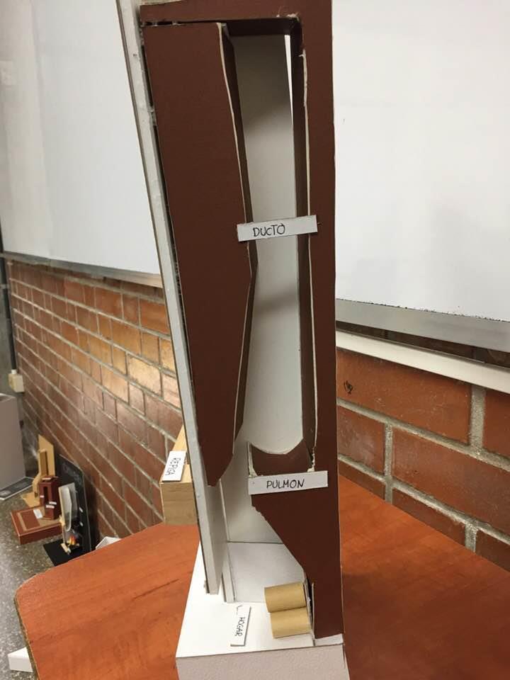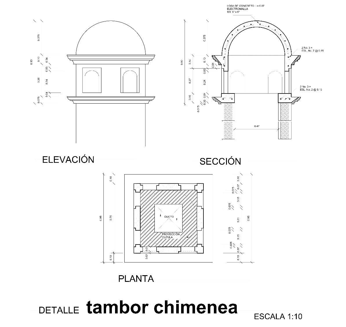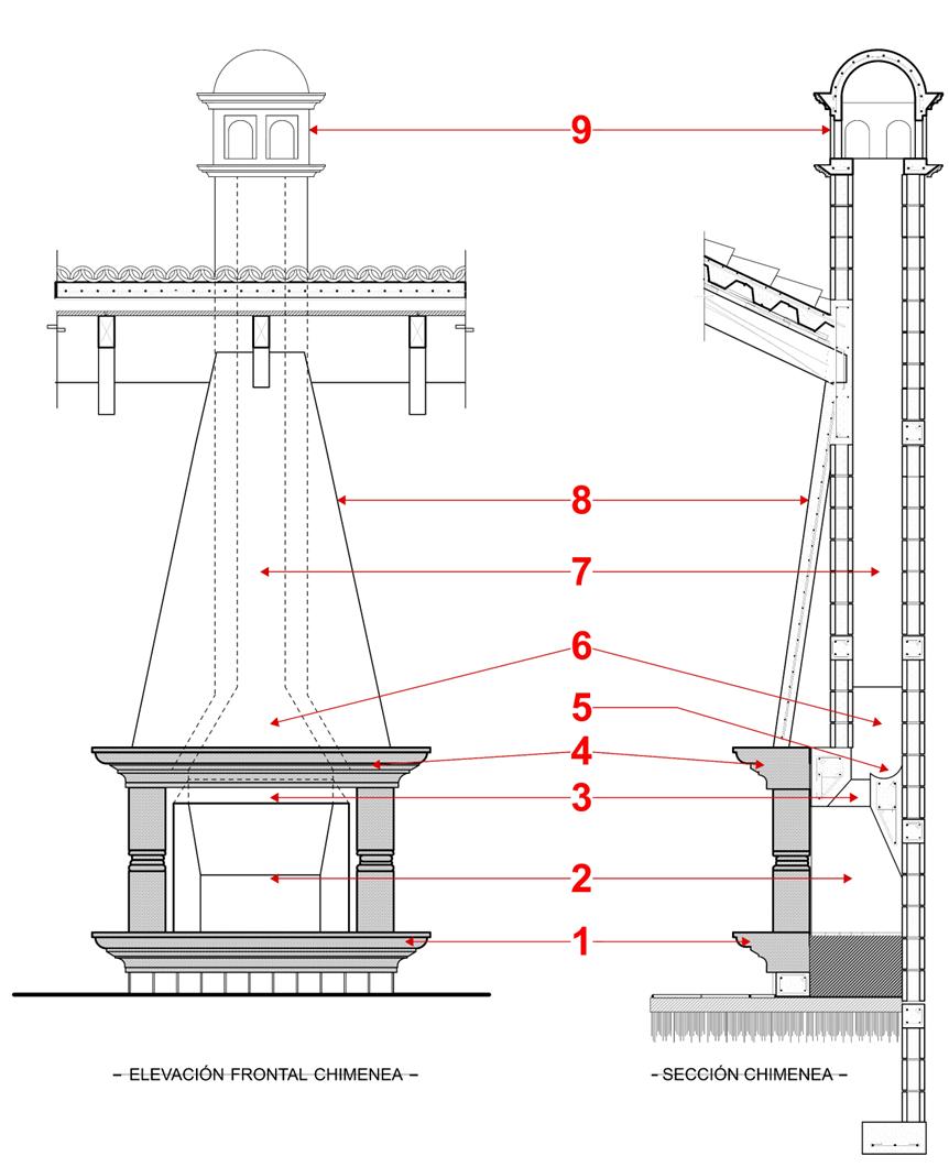 Cuenta con dos partes: el hogar, donde se realiza todo el proceso de combustión, y el conducto vertical (tiro), dedicado a dar salida a todos los humos y residuos fruto del proceso de la combustión.