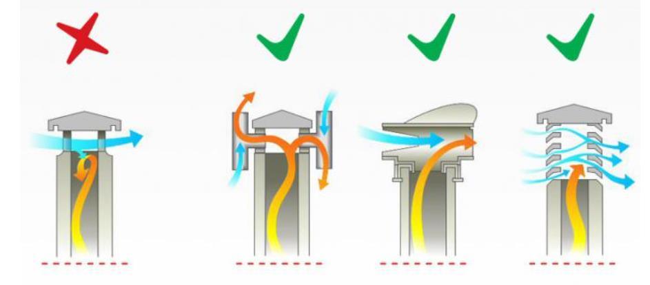 Una garganta suave promueve una corriente de aire fuerte sin afectar los gases de combustión.