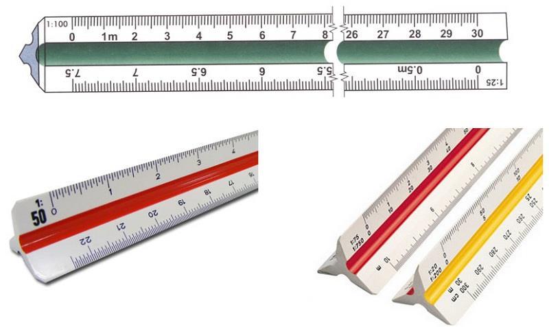 Es una regla especial con forma prismática, que contiene 6 escalas: 1:20, 1:25, 1:50, 1:75, 1:100, 1:125 (sistema métrico)
