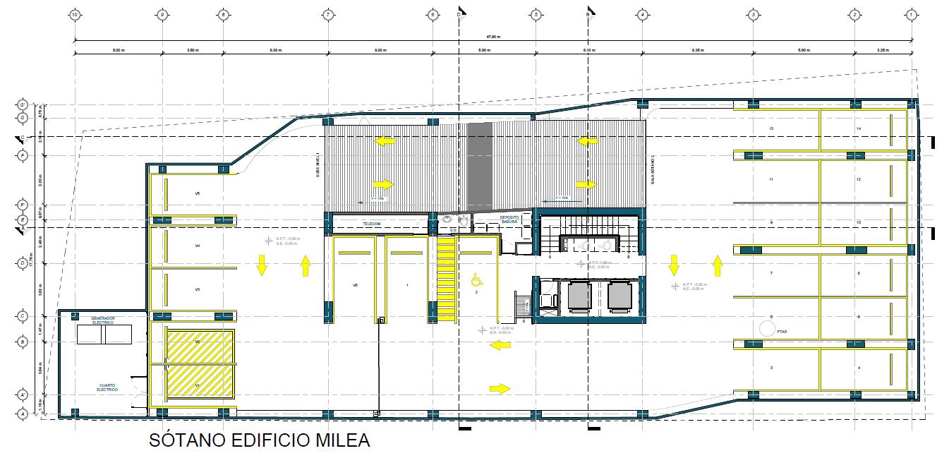 2.10 m. DESARROLLO RAMPA VEHICULAR EN SÓTANO ▪ FHA PERMITE EN SÓTANO ALTURA MÍNIMA DE 2.10 m. RAMPA 5 +/- 0.70 m. 2.80 m. 17.50 m. ▪ DESARROLLO RAMPA: PENDIENTE MÁXIMA 15% - 17% DESARROLLO DE RAMPA = ALTURA / % DE PENDIENTE EJEMPLOS: 2.80 m. / 15% = 18.67 m. 2.80 m. / 16% = 17.50 m. (PROMEDIO) 2.80 m. / 17% = 16.47 m.