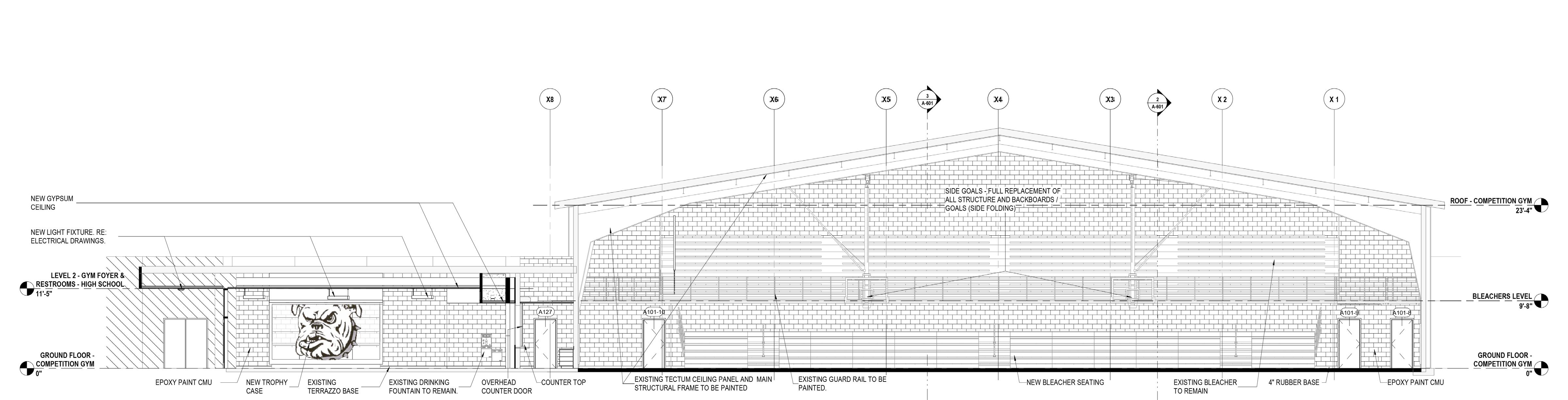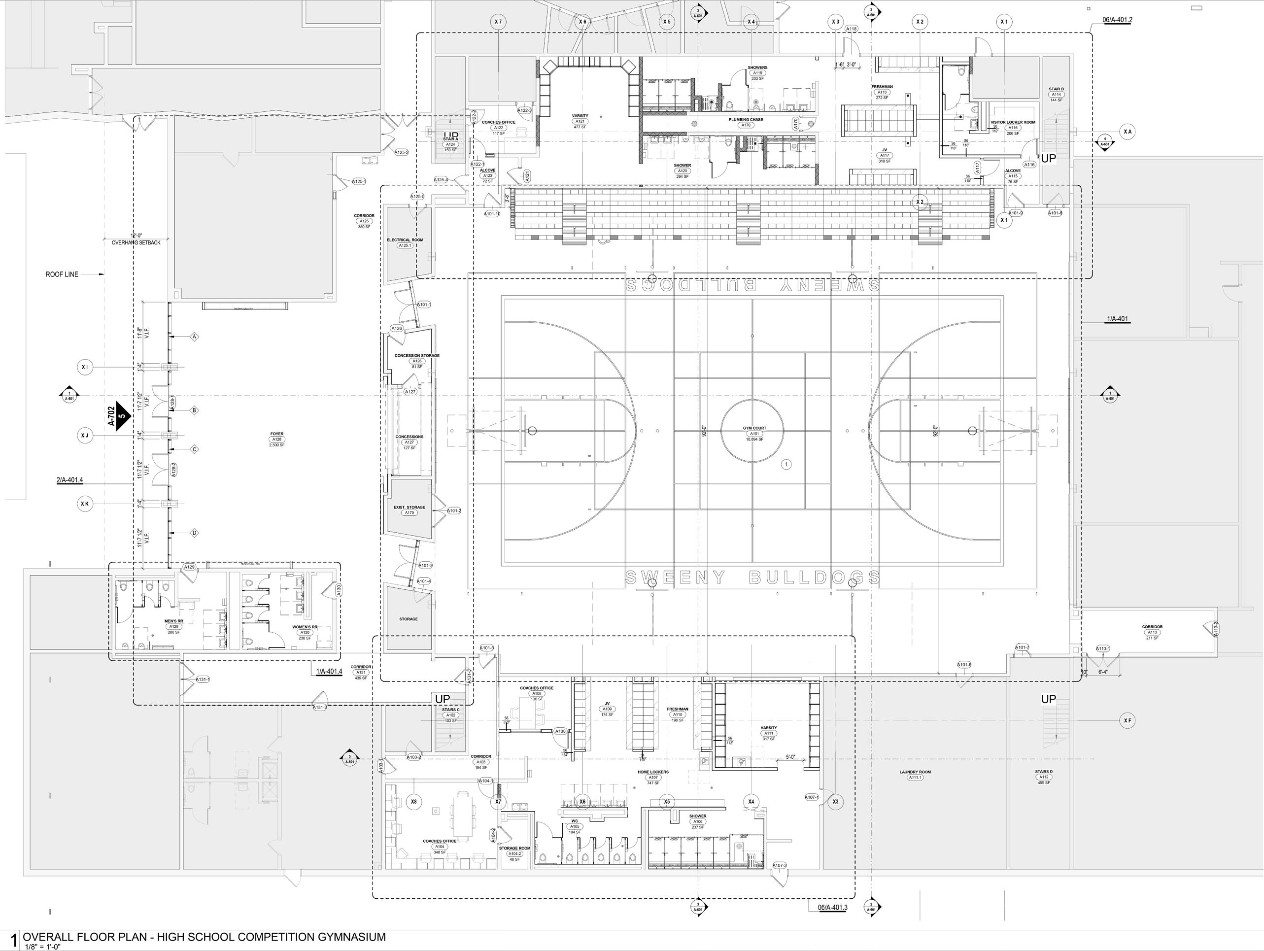 Sweeny ISD proposes interior renovations to multiple campus gymnasiums and support spaces to promote a better and safer environment for their student population. Amongst the various improvements targeted for the elementary, junior high and high school campuses include: repair or replacement of gymnasium flooring, replacement of existing basketball equipment, replacement of safety wall padding, possible upgrades to low energy consumption lighting, and renovation of existing student locker rooms.