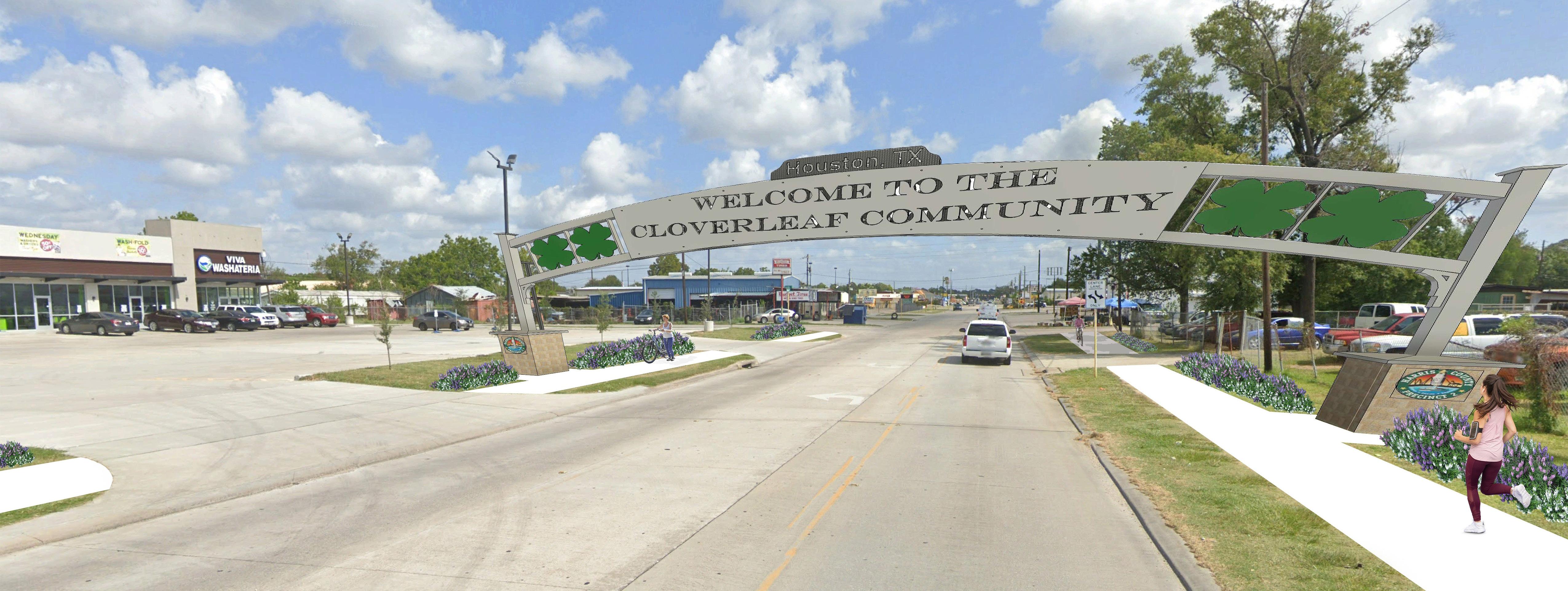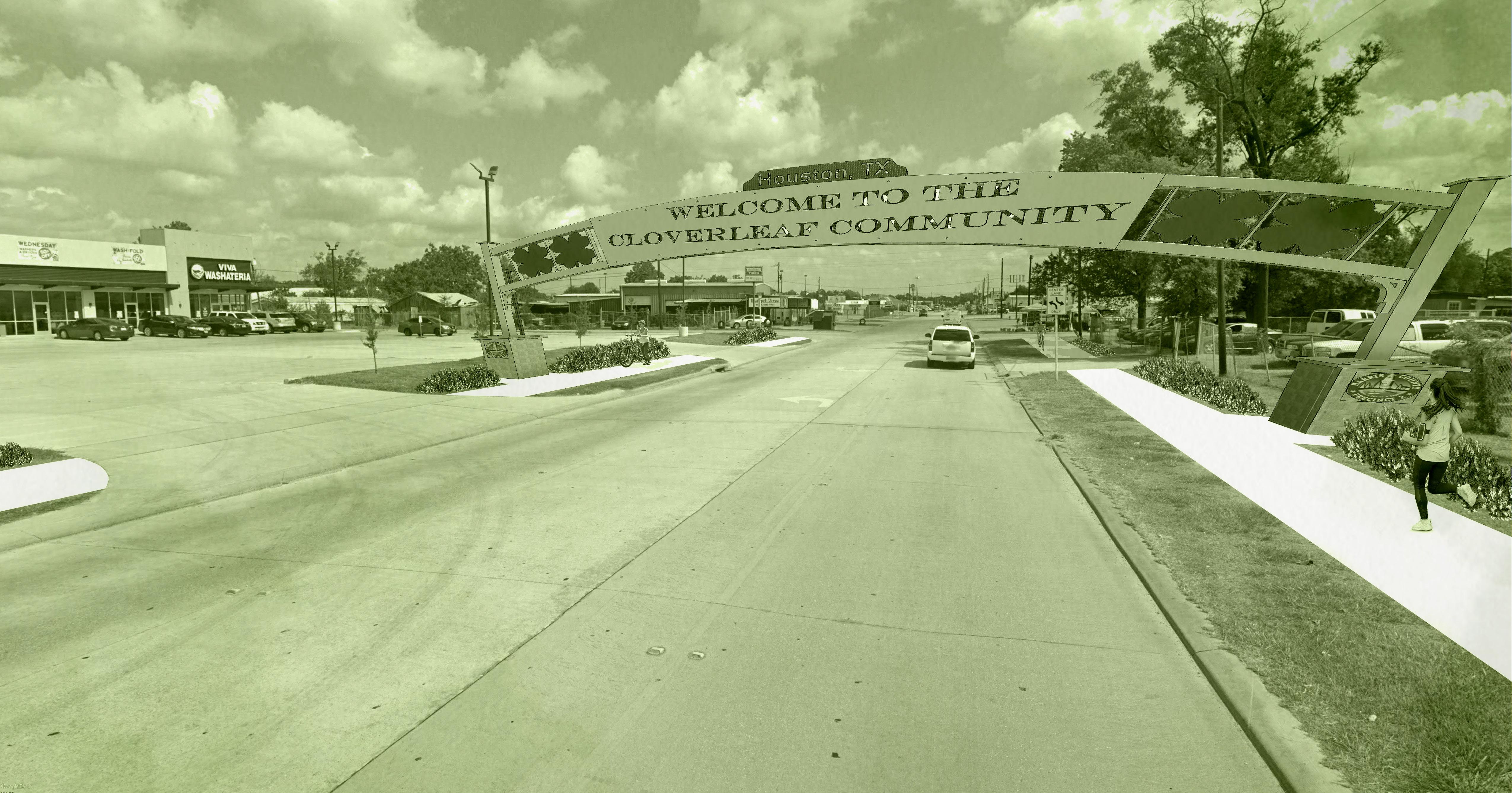 Located along Freeport Street in Cloverleaf, TX, this proposed urban-design intervention creates a welcoming entry gateway that enhances pedestrian comfort, strengthens community identity, and welcoming arrival experience. Cloverleaf, TX, a dense 2.3-square-mile East Harris County community of nearly 29,000 residents—now predominantly Hispanic—shaped by decades of growth since the 1930s and facing ongoing needs for safer, more connected streets. Based on the Houston–Galveston Area Council (H-GAC) and Project Management Team (PMT) study concept report, which identifies Cloverleaf’s community-driven goals and priorities, I applied its insights to develop design strategies that support local residents, reinforce neighborhood identity, enhance pedestrian comfort, and foster a more welcoming and connected environment.