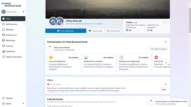 Pantalla principal de Meta Business