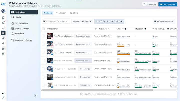 Publicaciones e Historias Resultados