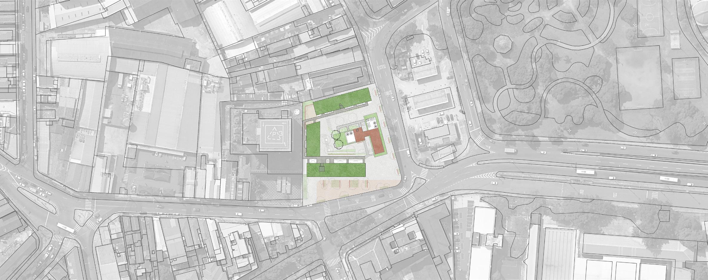 O projeto acontece em São Cristóvão, um bairro central na zona norte do Rio de Janeiro. A sua ocupação revela a história do lugar, onde todas as camadas temporais estão presentes retalhando as regiões do bairro - a Quinta da Boa Vista, o Centro Luiz Gonzaga, a Cadeg, os galpões industrias, as residencias unifamiliares, os recentes condomínios residenciais, o Morro do Tuiuti... - e revelando o seu desenvolvimento desordenado, que resultou em um bairro de caráter industrial, com alto déficit habitacional, pouca segurança, cercado por vias expressas e viadutos, e pouco comércio e serviço disponíveis.