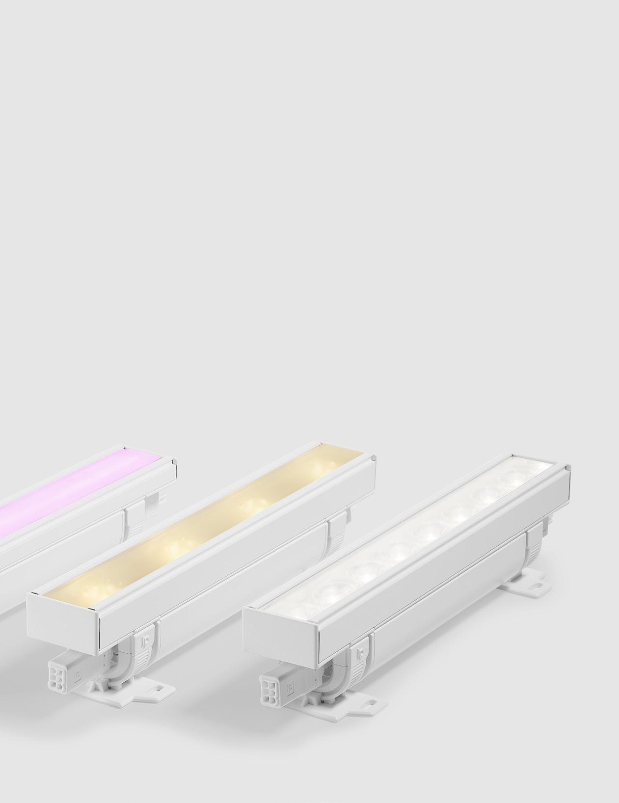 Idéaux pour l'éclairage général, l'éclairage d'accentuation, l'éclairage de corniche, l'éclairage diffus ou rasant, ces luminaires s'adaptent aisément à tous les besoins. Grâce à un rendement lumineux élevé, une vaste sélection d'optiques et des options de couleurs flexibles - y compris le Static White, le Dynamic White et le Color Changing (Opticolor) - la famille Lumencore Linear permet aux concepteurs de créer des ambiances personnalisées avec style et précision.