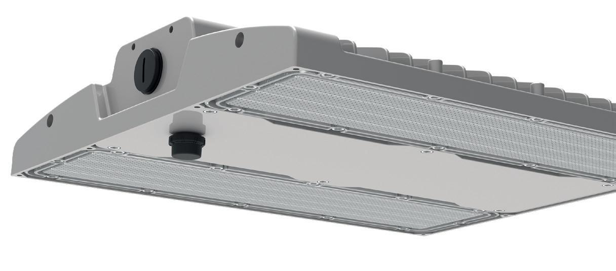 • Opal ribbed polycarbonate diffuser to reduce glare