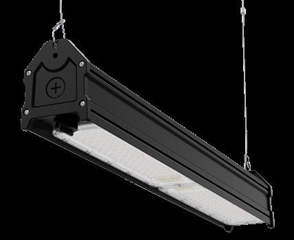 A flexible linear high bay with selectable power and optics, designed for modern warehouse lighting.