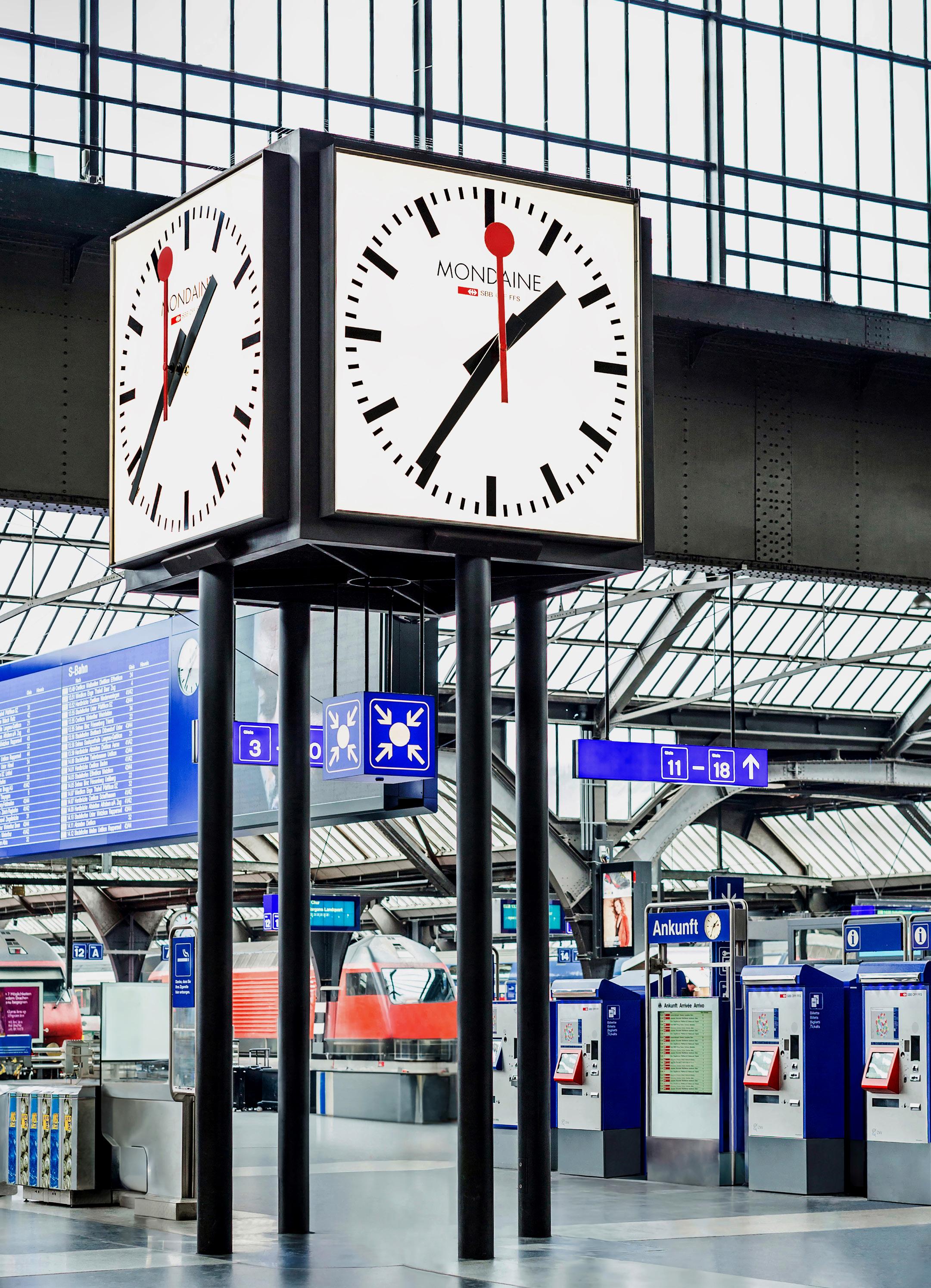 Today, the MONDAINE SBB collection stands as a respected design in its own right, recognized as one of the top ten classic Swiss watch designs. Conceived in Switzerland and made for the world, this collection sets standards with its excellent readability and unique minimalist design. This globally renowned watch classic collection has achieved cult status with its design. It is prominently displayed at the iconic meeting point in the main station of Zurich, Switzerland, visible to all travelers and tourists, serving as the landmark of the largest train station in Switzerland.