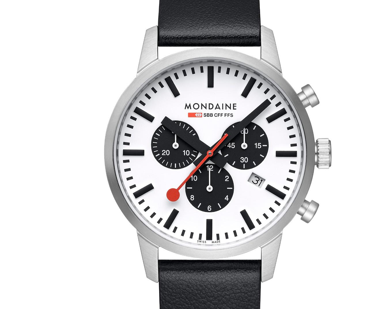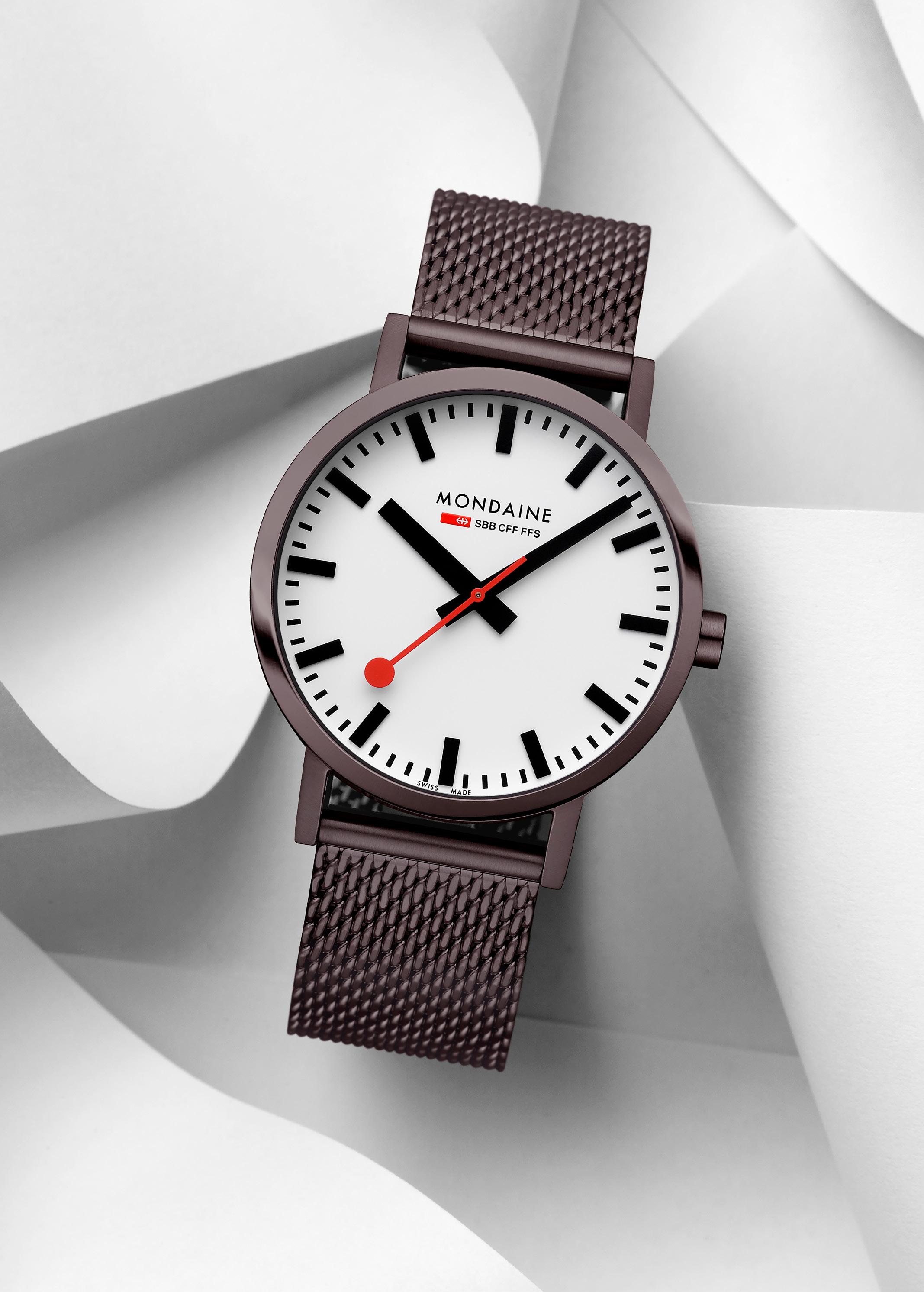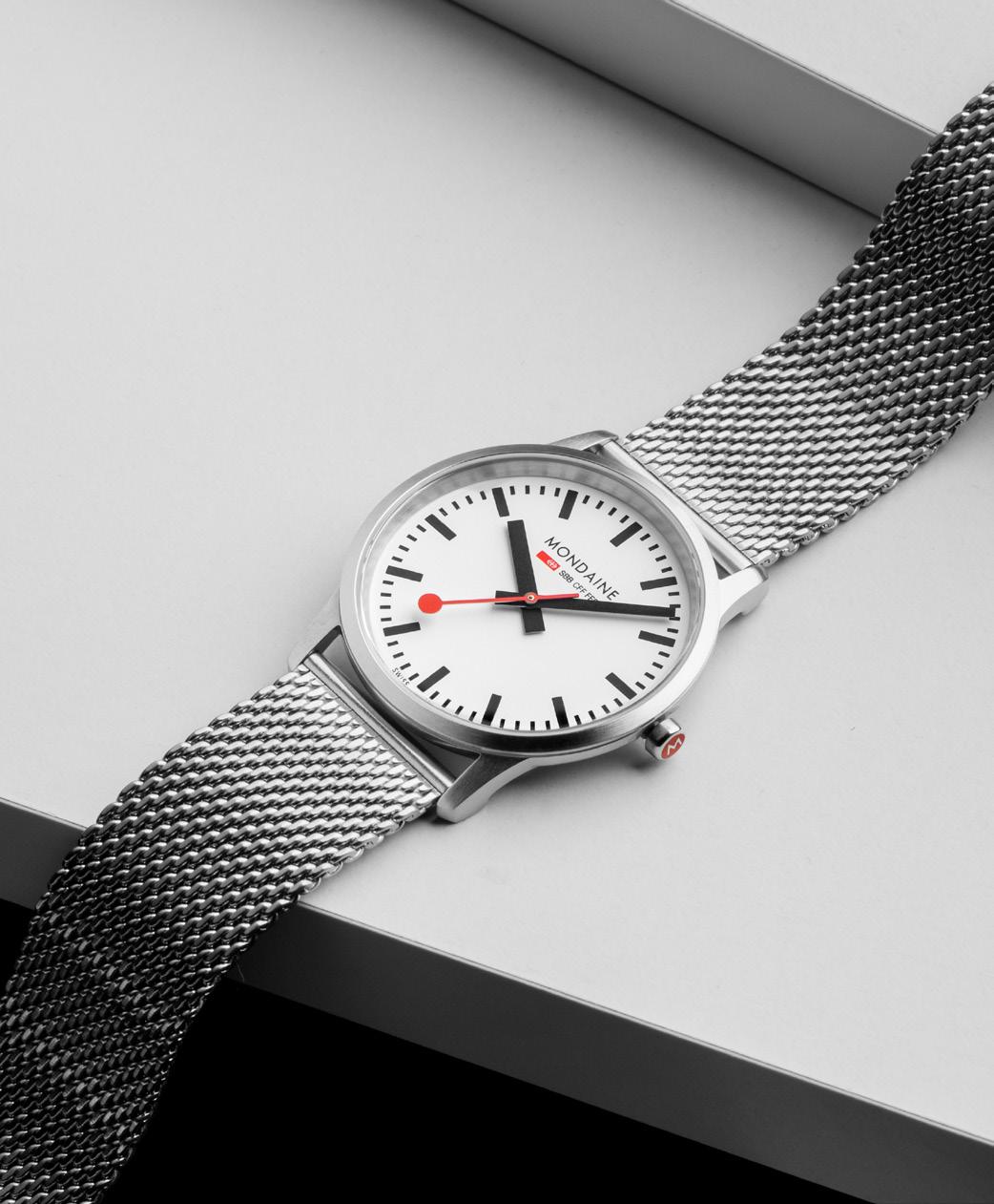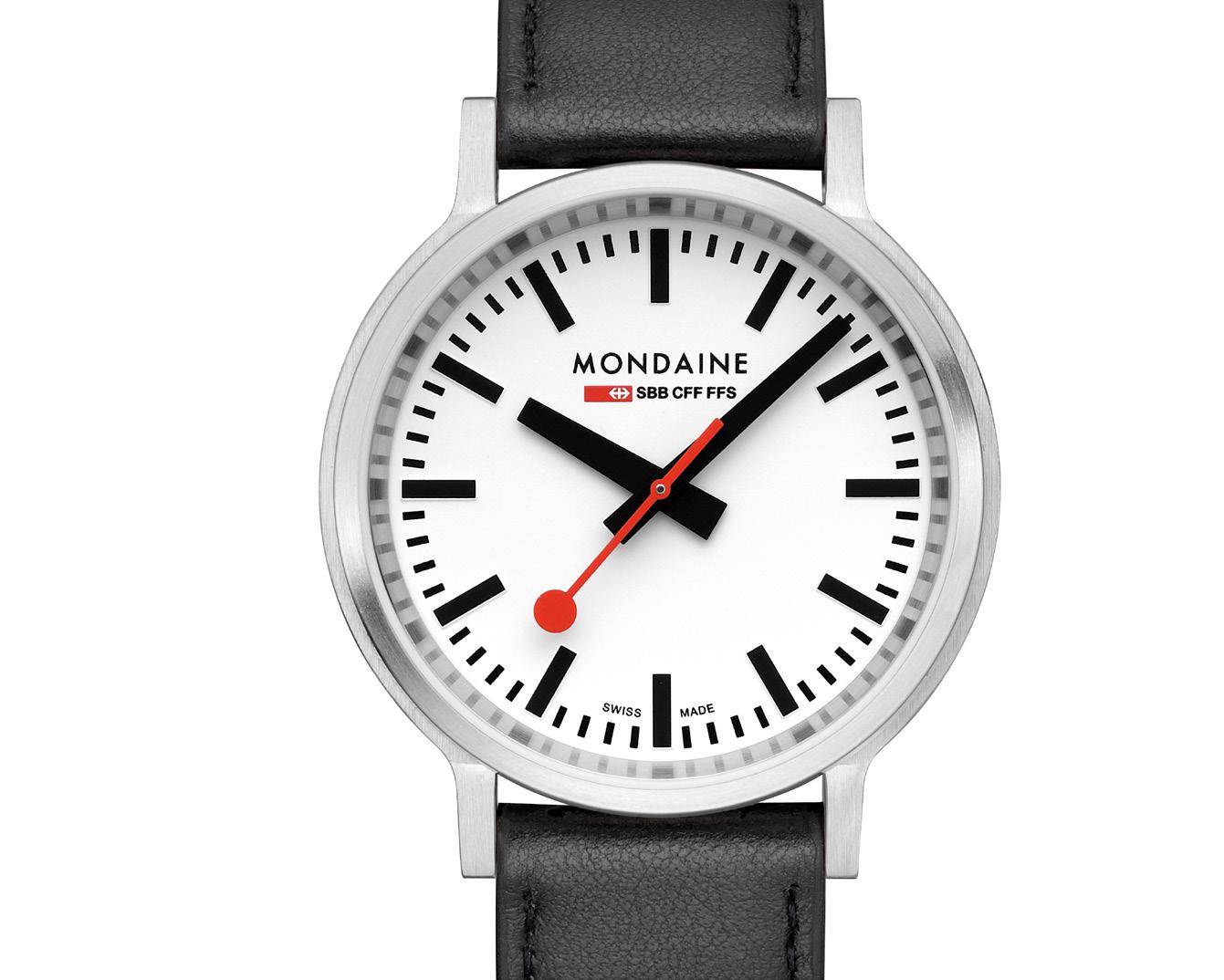 MONDAINE watches highlight Swiss excellence in both quality and design. Our minimalist aesthetic , clear and easily readable face, distinctive hands, and renowned red seconds hand have earned us global recognition. The MONDAINE SBB collection, featuring the iconic design of the Official Swiss Railways Clock, is instantly recognizable and embodies modern Swiss heritage. Invented and crafted in Switzerland, MONDAINE timepieces are made for the world.