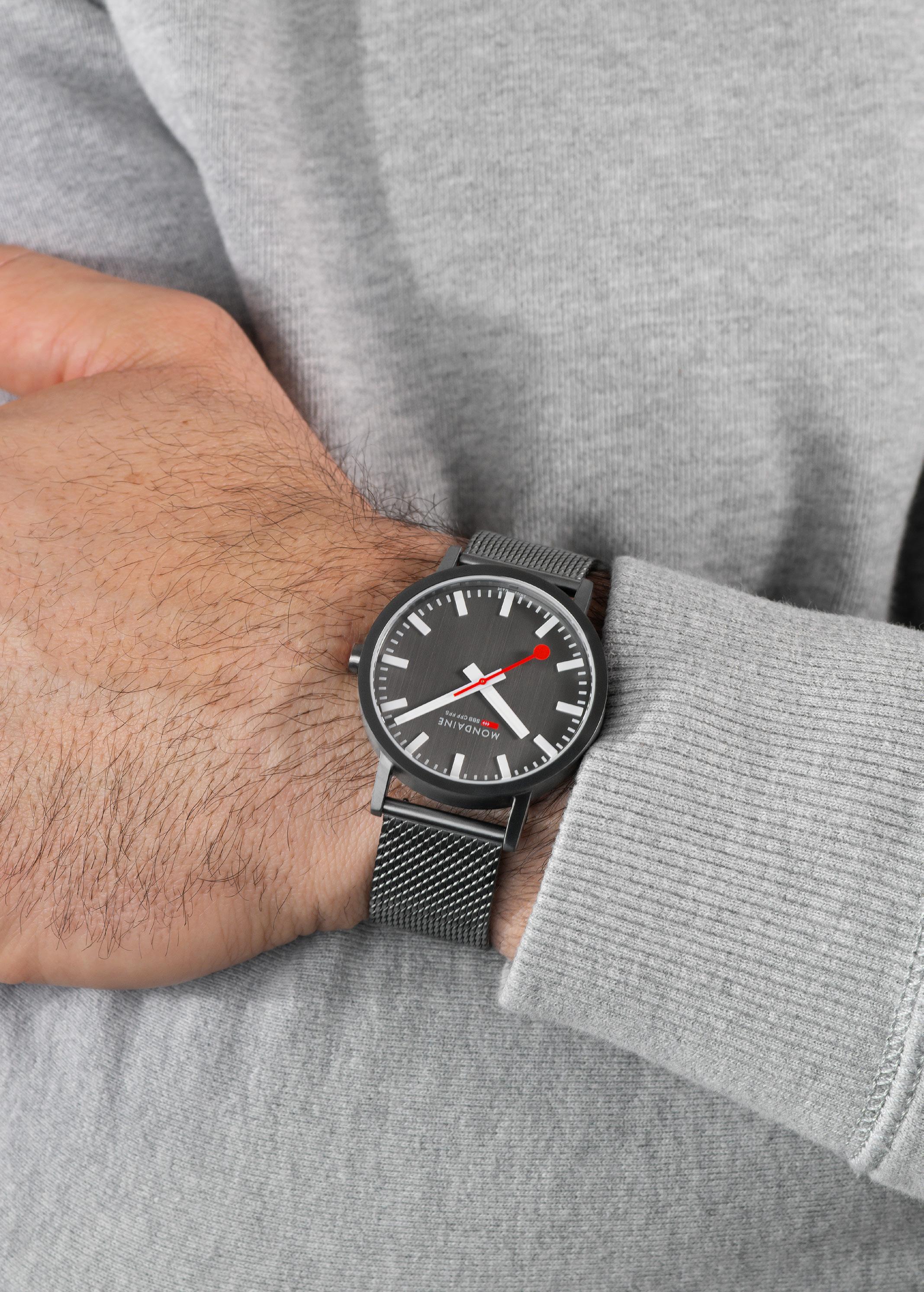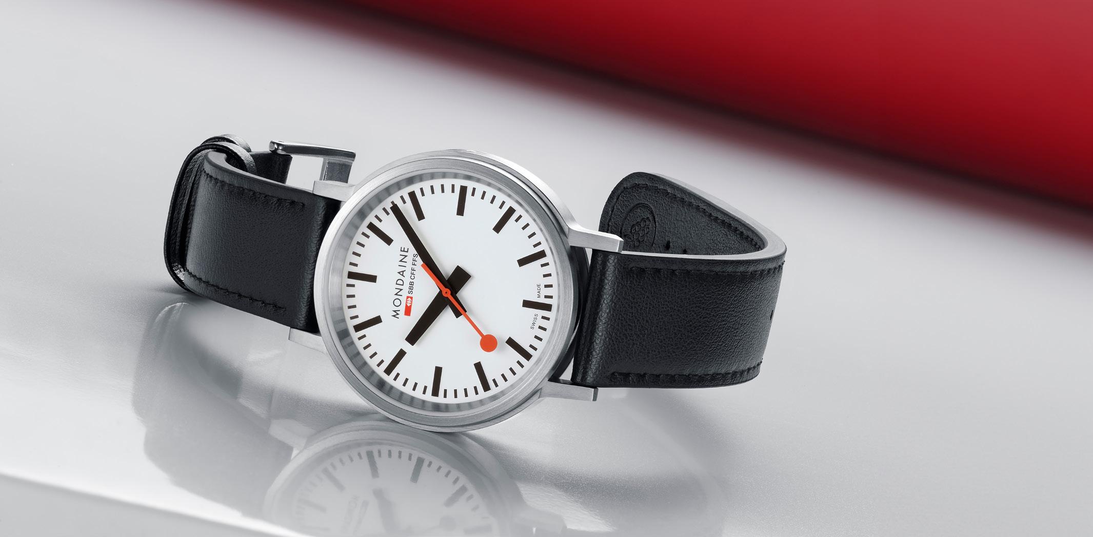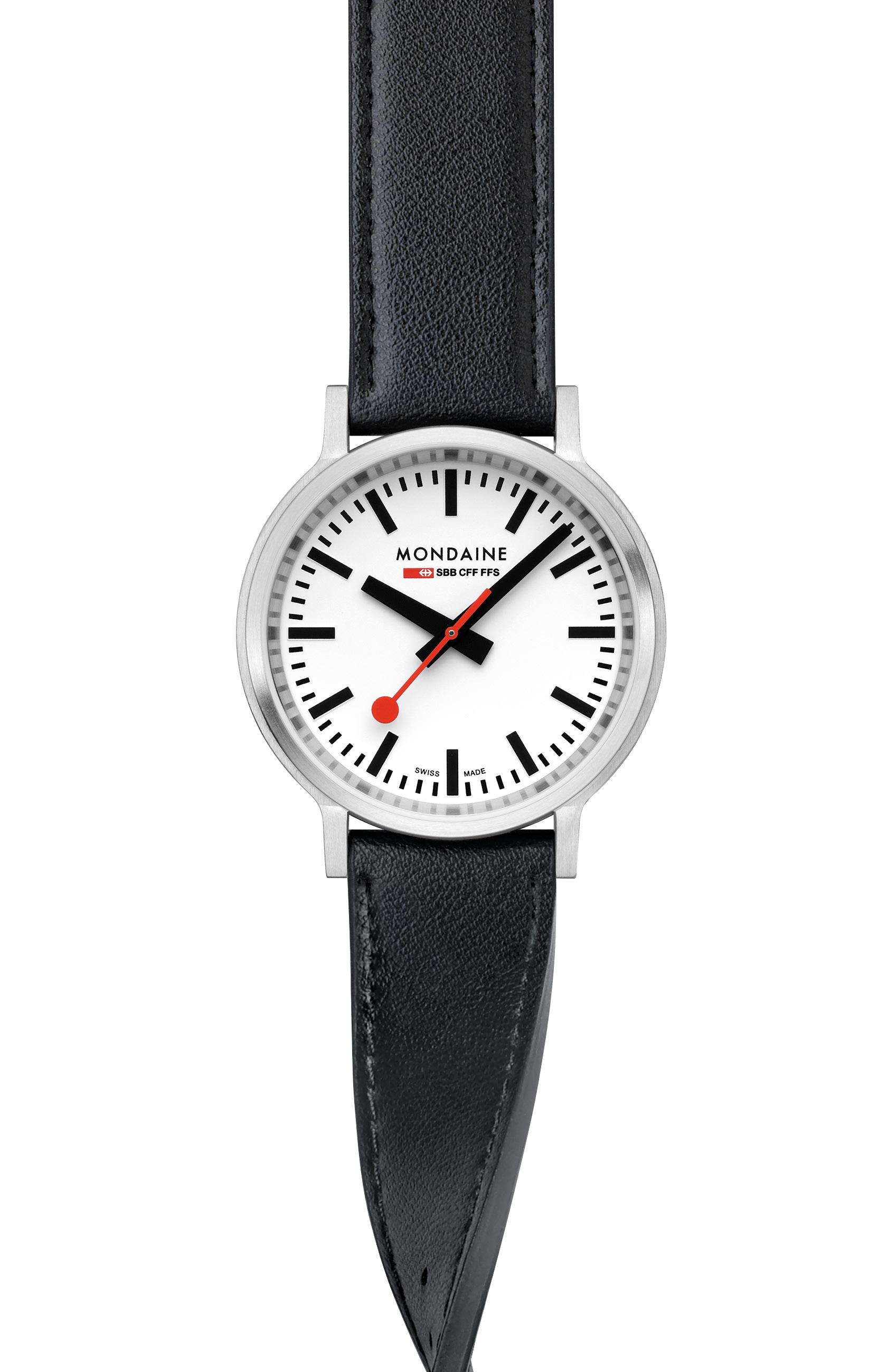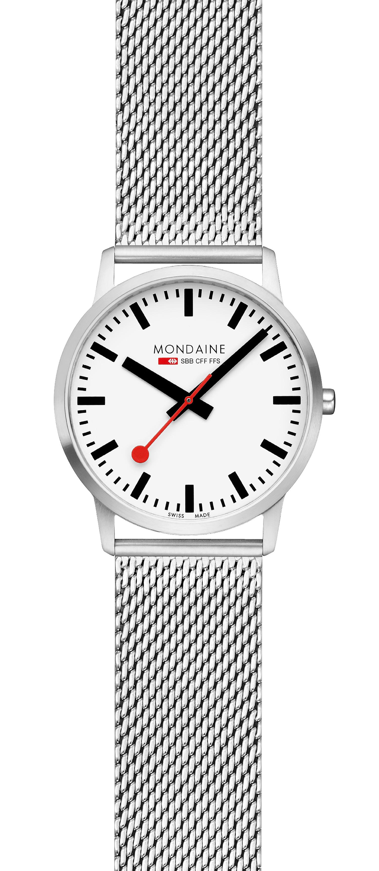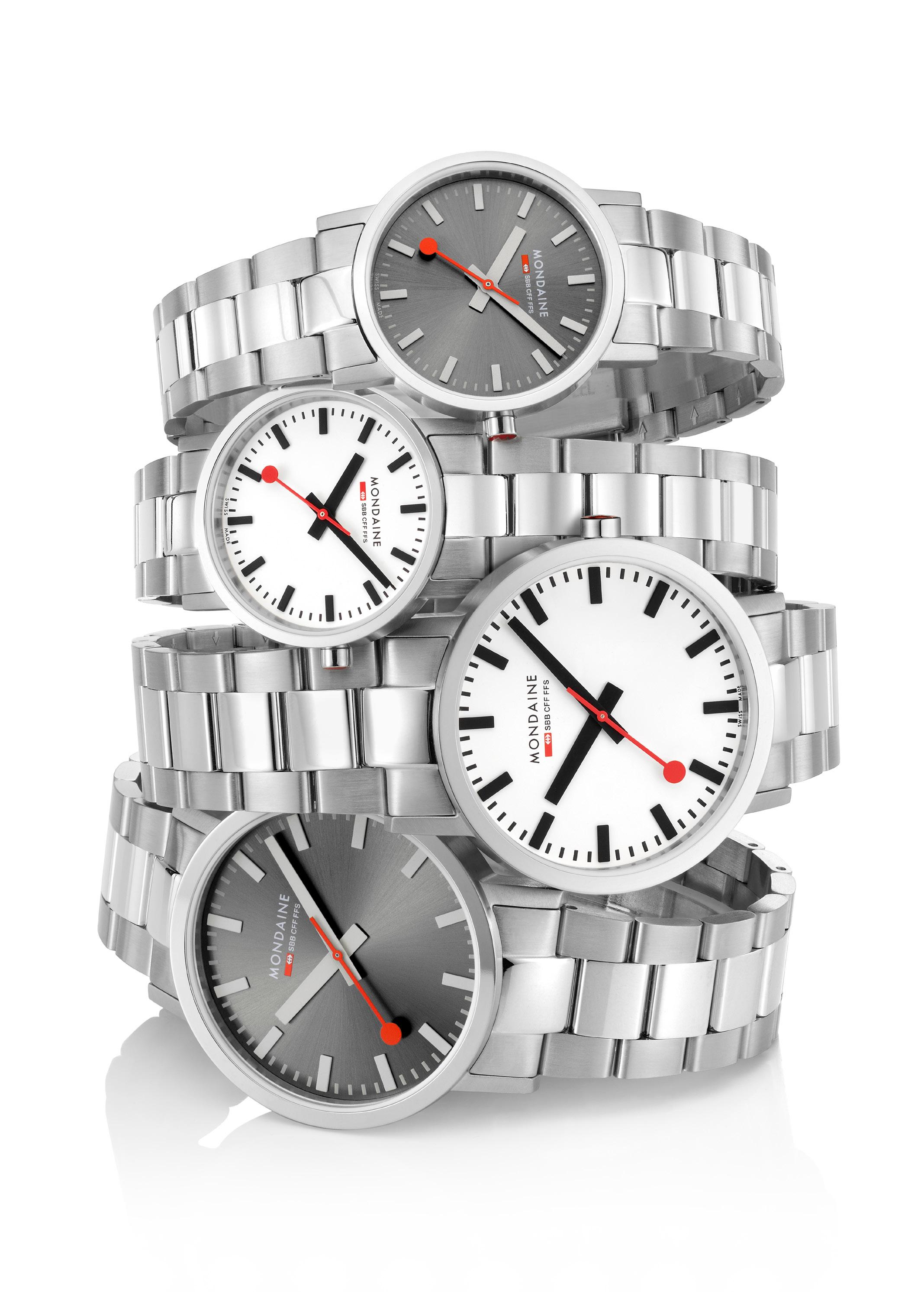 MONDAINE watches highlight Swiss excellence in both quality and design. Our minimalist aesthetic , clear and easily readable face, distinctive hands, and renowned red seconds hand have earned us global recognition. The MONDAINE SBB collection, featuring the iconic design of the Official Swiss Railways Clock, is instantly recognizable and embodies modern Swiss heritage. Invented and crafted in Switzerland, MONDAINE timepieces are made for the world.