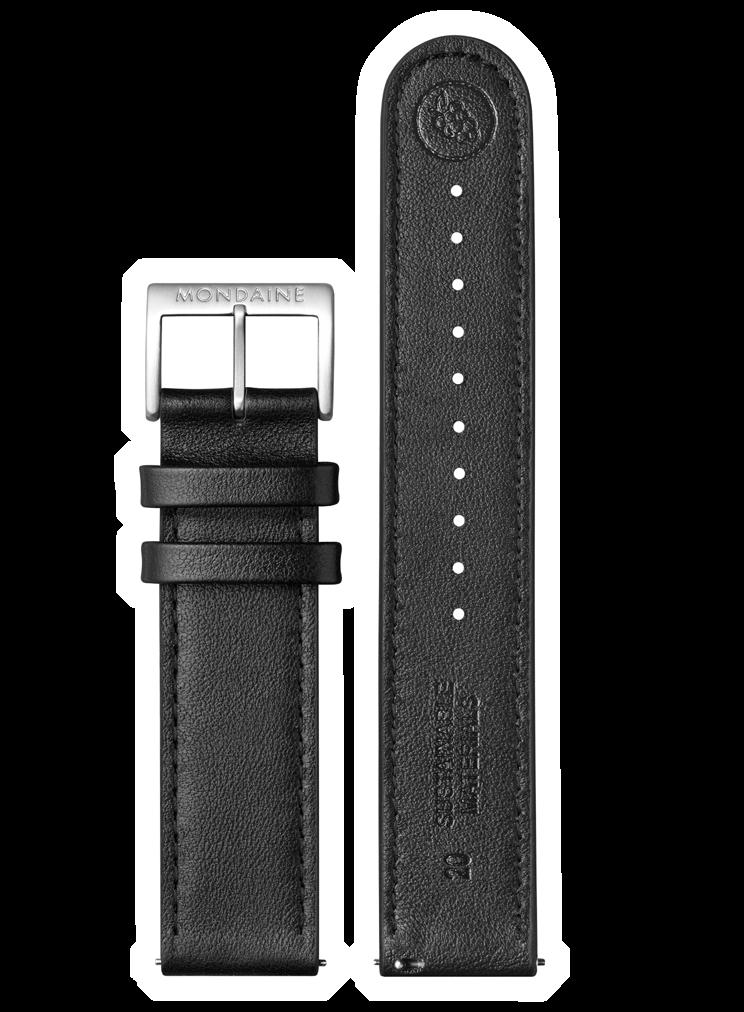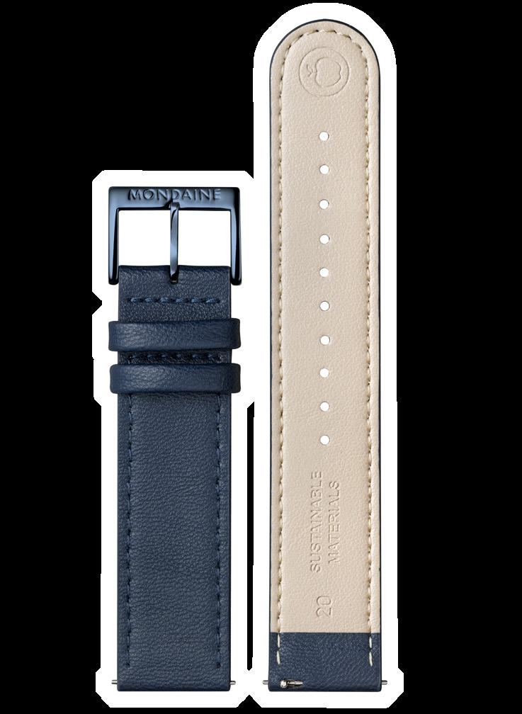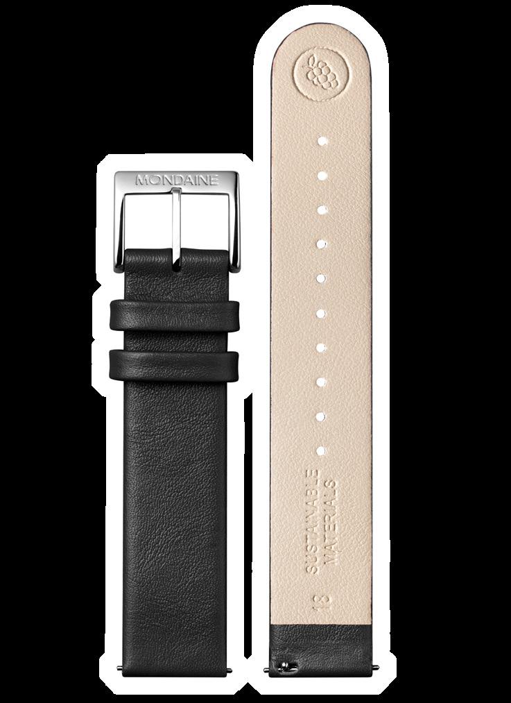 At MONDAINE, responsibility is built into every watch. From the materials used and how it’s made, to the people who make it, and how long it stays with you. Just as our iconic design has endured since 1944, so has our ambition to minimise our impact. We first introduced solar-powered watches in the 1970s to reduce battery waste, and today our Swiss factory is powered by up to 80% solar energy. We pioneered the use of naturally derived and animal-free alternative materials for our watch straps, and with cases containing up to 91% recycled stainless steel, reduced packaging initiatives, and a comprehensive repair and recycling program, a MONDAINE watch is made to be worn for years –without costing the earth, and without costing you more.