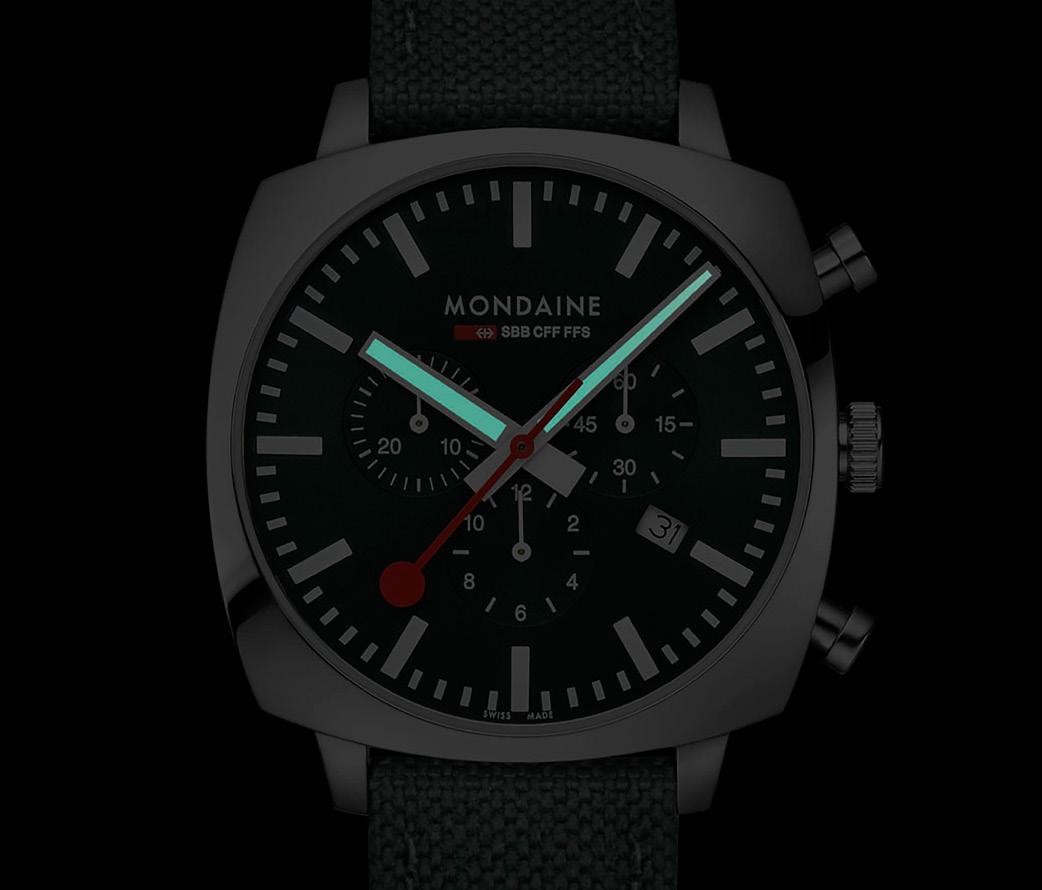 costs and the essential manufacturing step of the watch head (excluding the bands) occur in Switzerland and a final quality control inspection must take place on Swiss territory. Located in Solothurn, MONDAINE watches are crafted with meticulous craftsmanship and undergo rigorous testing to meet the highest standards.