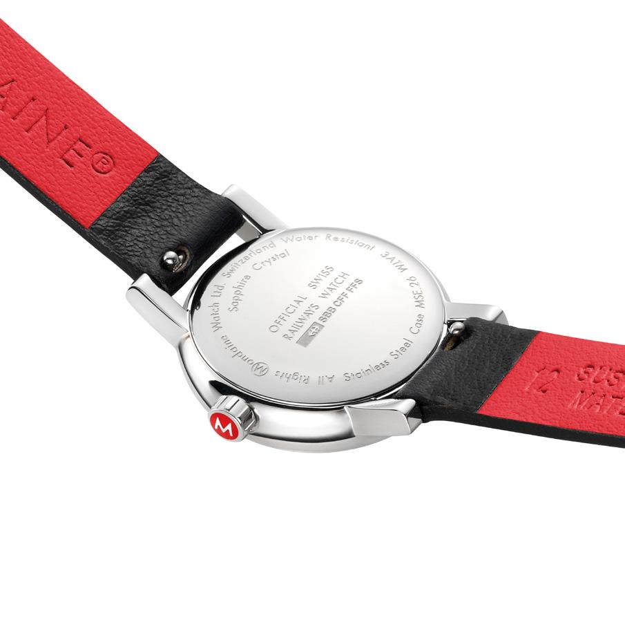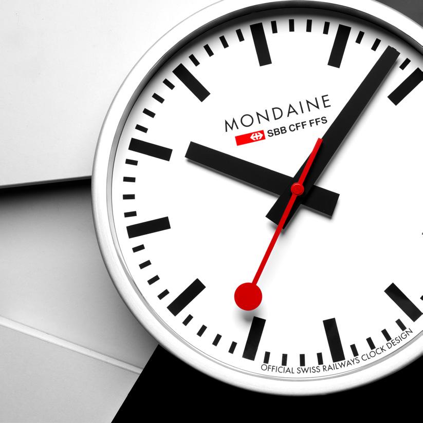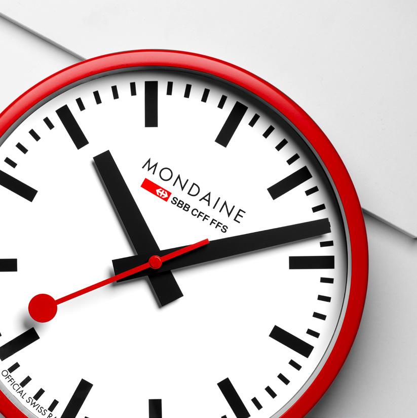 Since our inception, red has stood as the iconic colour of the MONDAINE brand. It’s the pop of colour in our design, highlights our rich history and heritage, and even mirrors the presence of red in the Swiss flag. As you step onto any Swiss station platform, in the middle of all the busy activity, the countdown is evident: from afar, you can discern the 45 seconds remaining until the hand reaches twelve, marking the departure of the train. This iconic feature of Swiss Railways Station Clocks has stood as a design staple for decades. The choice of red for the second hand of the Swiss Railways Station Clocks holds deep significance rooted in functionality and tradition. Originally utilized in various signaling systems across different sectors, including shooting ranges, air traffic control, and maritime communication, red emerged as a universal symbol of alertness and caution. In the context of railway operations, red signified a crucial message: stop. Hans Hilfiker's design ingeniously incorporated this historical association, ensuring that railway passengers were not only informed of the time but also compelled to pause and reflect in a moment of stillness. With the red second hand fixed in place, the train remained safely stationed until the designated departure time. Thus, the red hue of the second hand transcends mere aesthetics, embodying a legacy of functionality, safety, and the timeless elegance of Swiss craftsmanship.