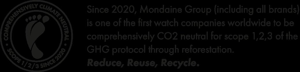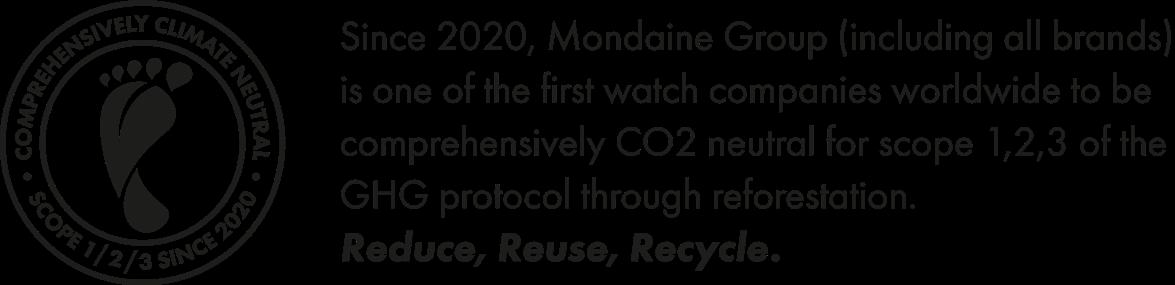says André Bernheim, Co-owner and Chairman of the Board of Directors and Environmental Officer of the Group. Today, Mondaine continues to advance responsible watchmaking. Since 2020, the Mondaine Group has calculated and removed its greenhouse gas emissions across scopes 1, 2 and 3 through reforestation projects, making the company comprehensively CO₂ neutral. Our watches are produced in Switzerland in a factory powered largely by renewable energy, with up to 80% generated by our own photovoltaic solar installation. This longstanding commitment is expressed through #TIMETOCARE –the belief that responsible watchmaking is not a trend, but a lasting responsibility. At MONDAINE, time also means caring for the world we share.
