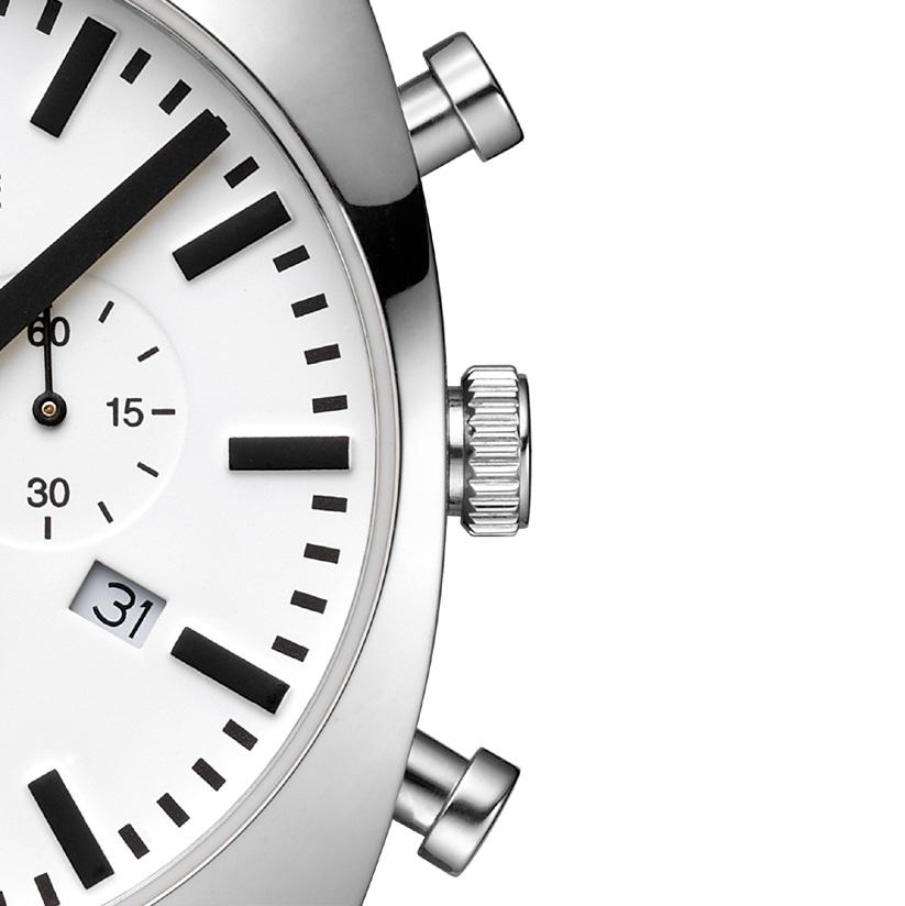 Relaunched the stop2go collection with a robust, crownless case design that mirrors the distinctive movement of the iconic Swiss Railways Station Clock. Introduced Cushion Collection featuring a cushionshaped case, inspired by vintage design and brand's heritage.