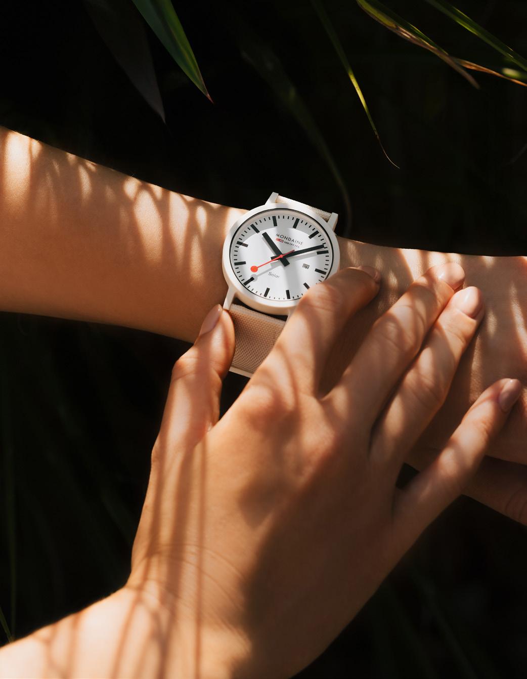 For decades, Mondaine has believed that watchmaking should respect both people and the planet. As a family-owned Swiss company, responsible thinking has shaped how our watches are designed, produced and used. Long before sustainability became a global topic, Mondaine was already exploring innovative solutions. In the 1970s, the company introduced one of the world’s first solar-powered analogue watches. In the decades that followed, Mondaine continued to pioneer responsible approaches, from recycled metal watch cases in the 1990s to the development of alternative materials and more sustainable production methods. “For decades, we have focused on responsible use of resources and continuously searched for better materials and solutions. With our long track record, we reduce our ecological footprint step by step”,
